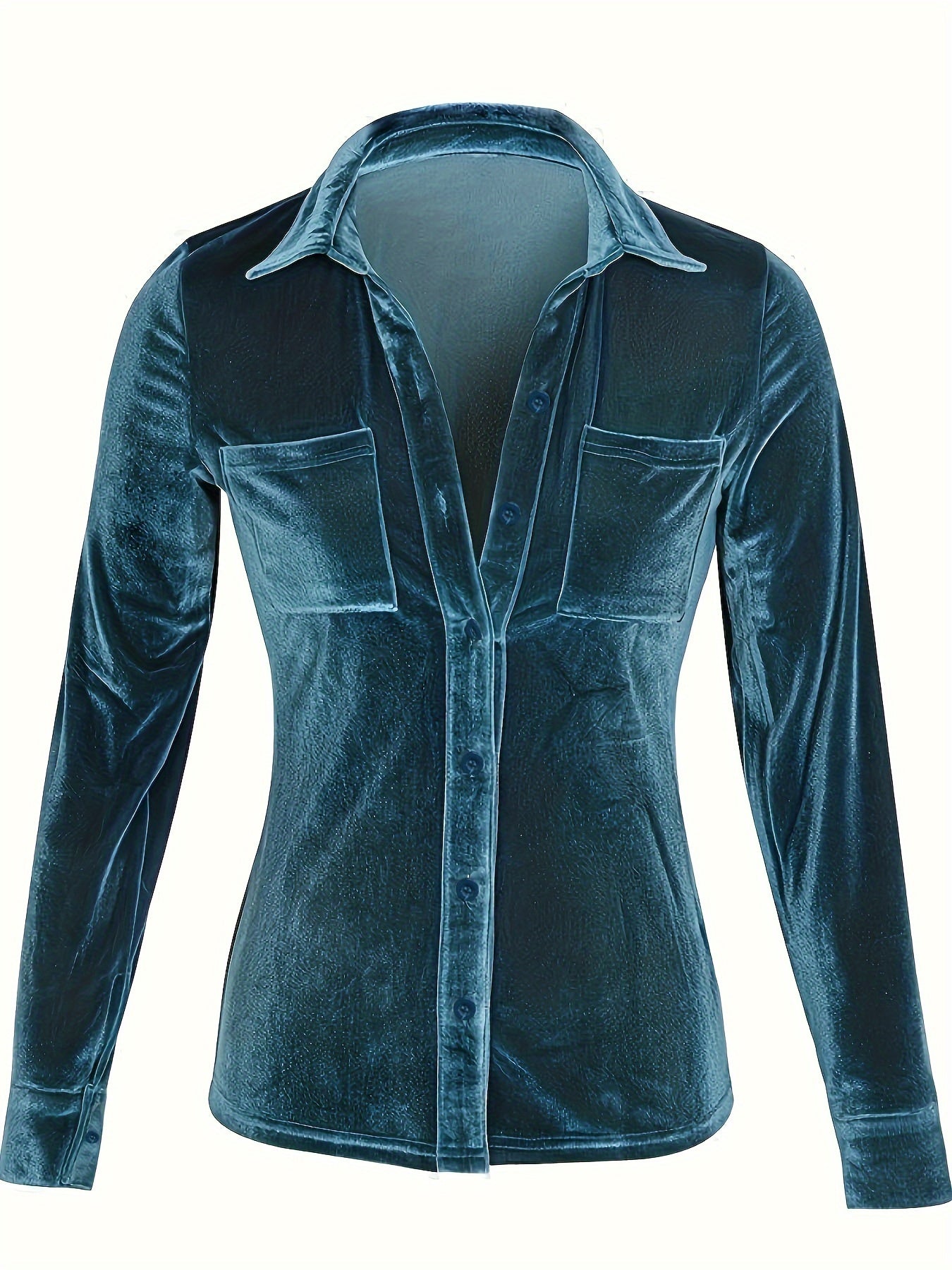 Camisa de manga larga para mujer de color sólido con bolsillo para primavera y otoño