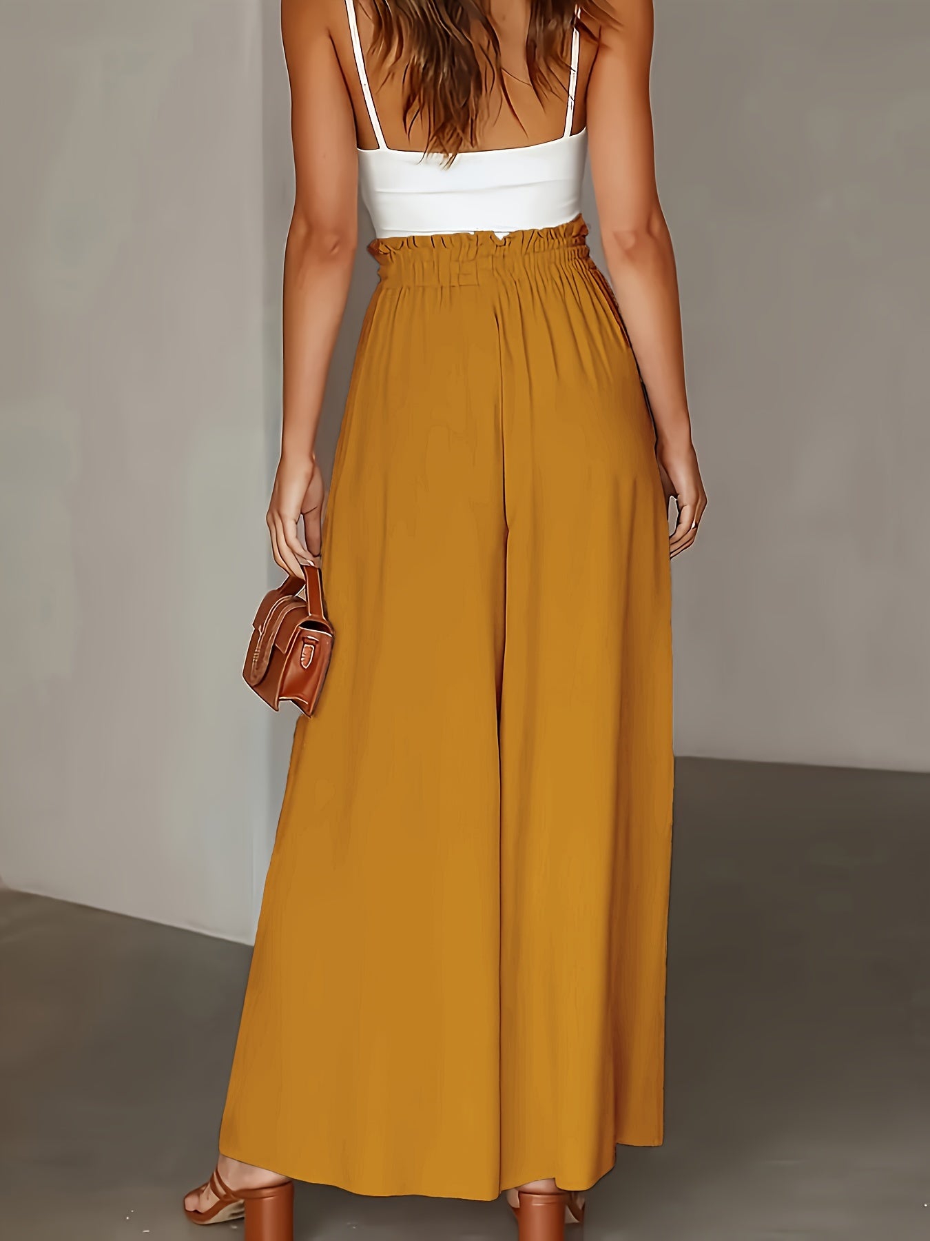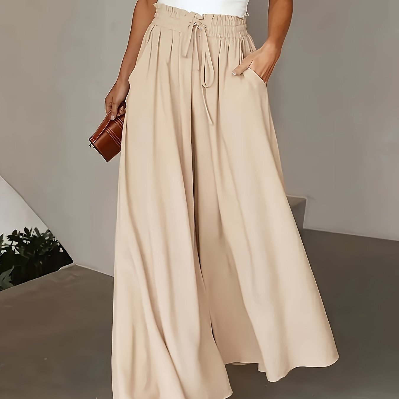 Pantalones de pierna ancha de talla grande para mujer, color azul sólido, poliéster ligero, ropa casual de playa