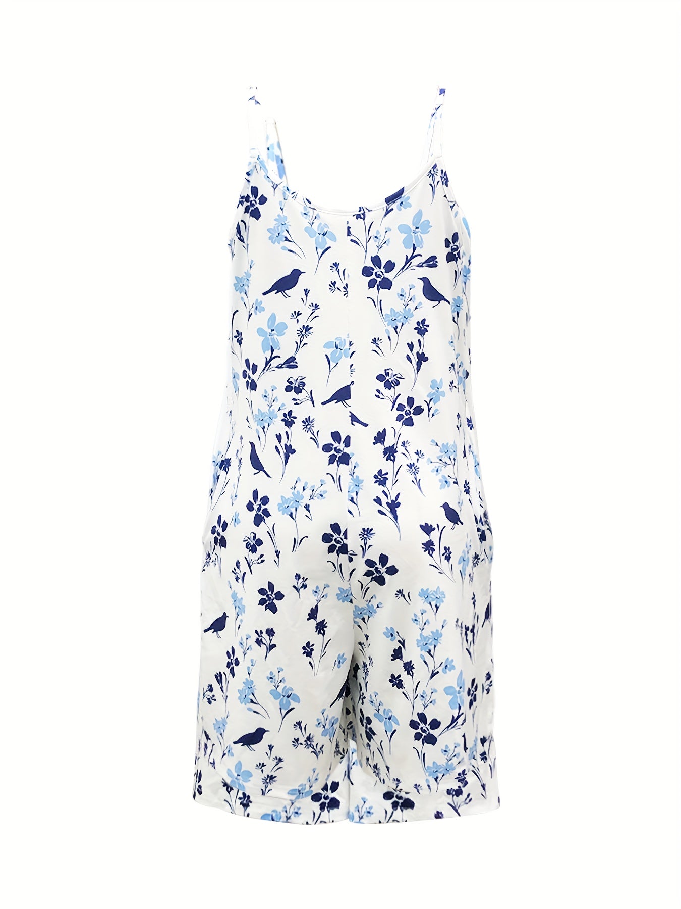 Mono sin mangas con bolsillos y estampado floral para mujer talla plus