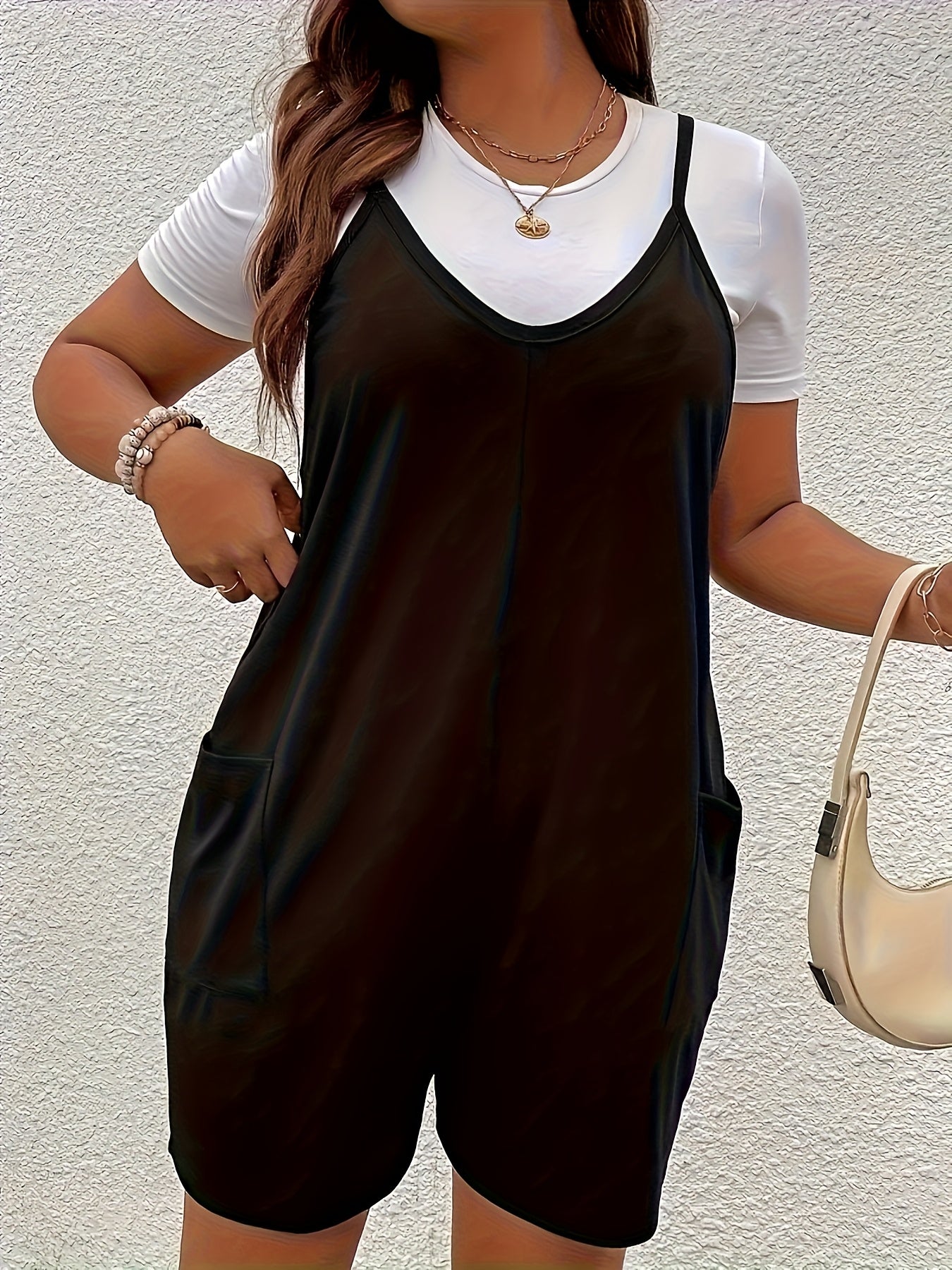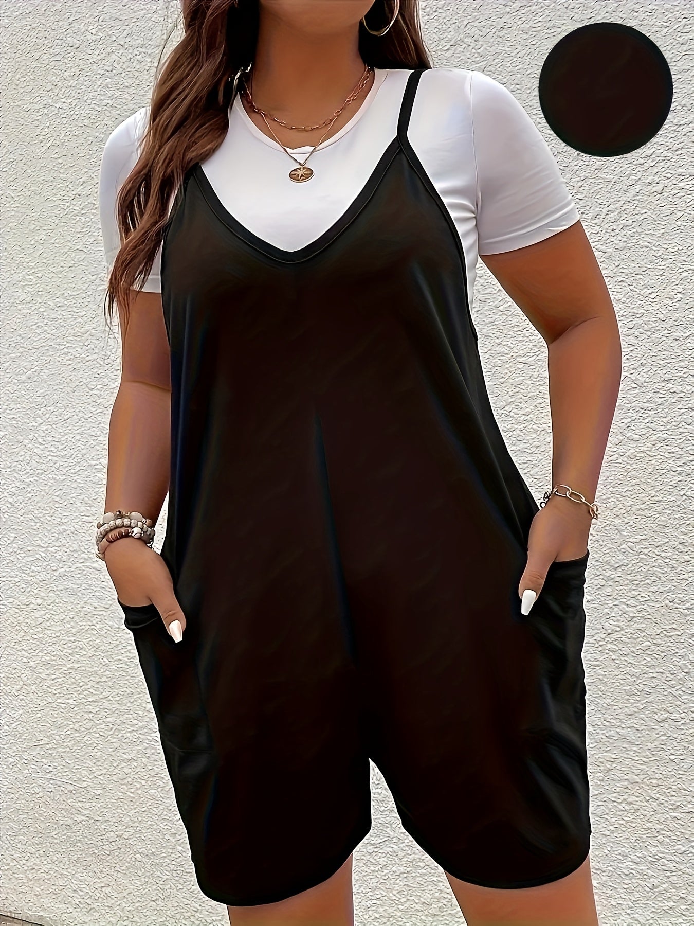 Mono de talla grande para mujer con estampado floral, de tela stretch y piernas anchas en negro