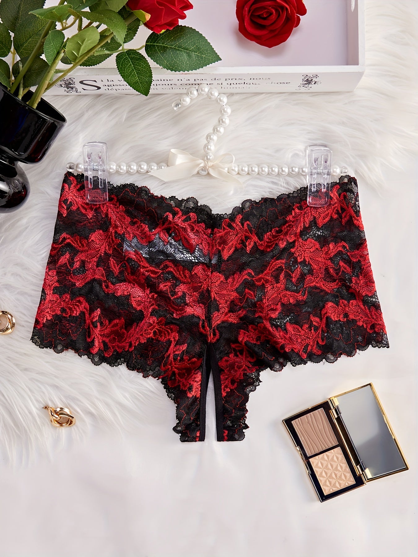 Panties de triángulo semi transparent con encaje para mujer talla grande rojo negro floral
