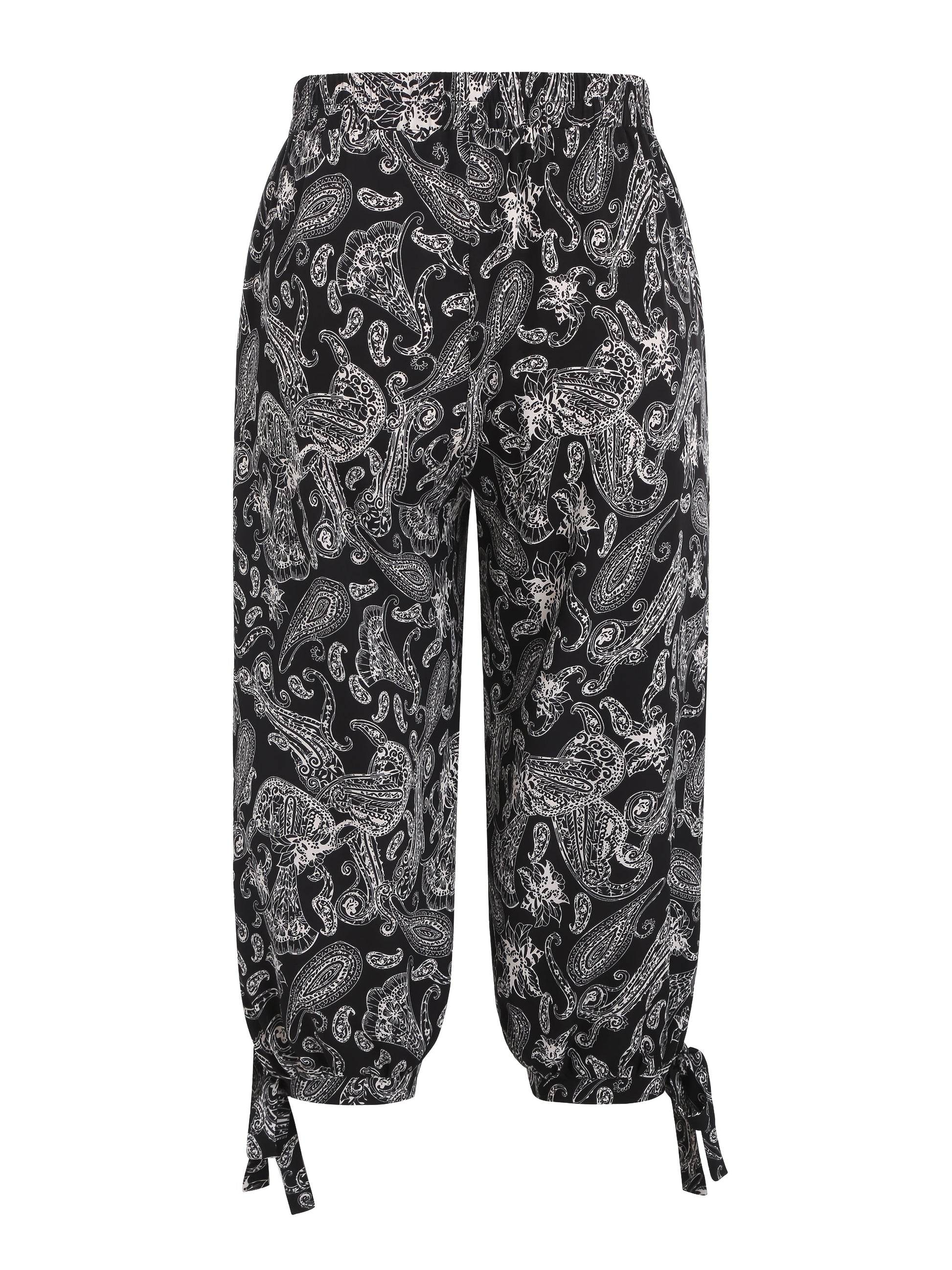 Pantalones capri de talla grande con estampado paisley para mujer, con cintura ajustable y abertura lateral
