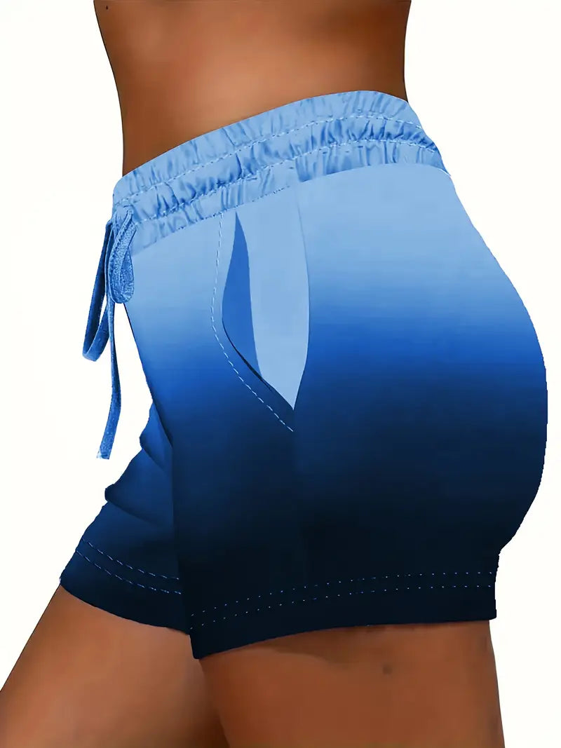 Pantalones cortos casuales de verano para mujer de talla grande con cordón y degradado de gris claro a negro