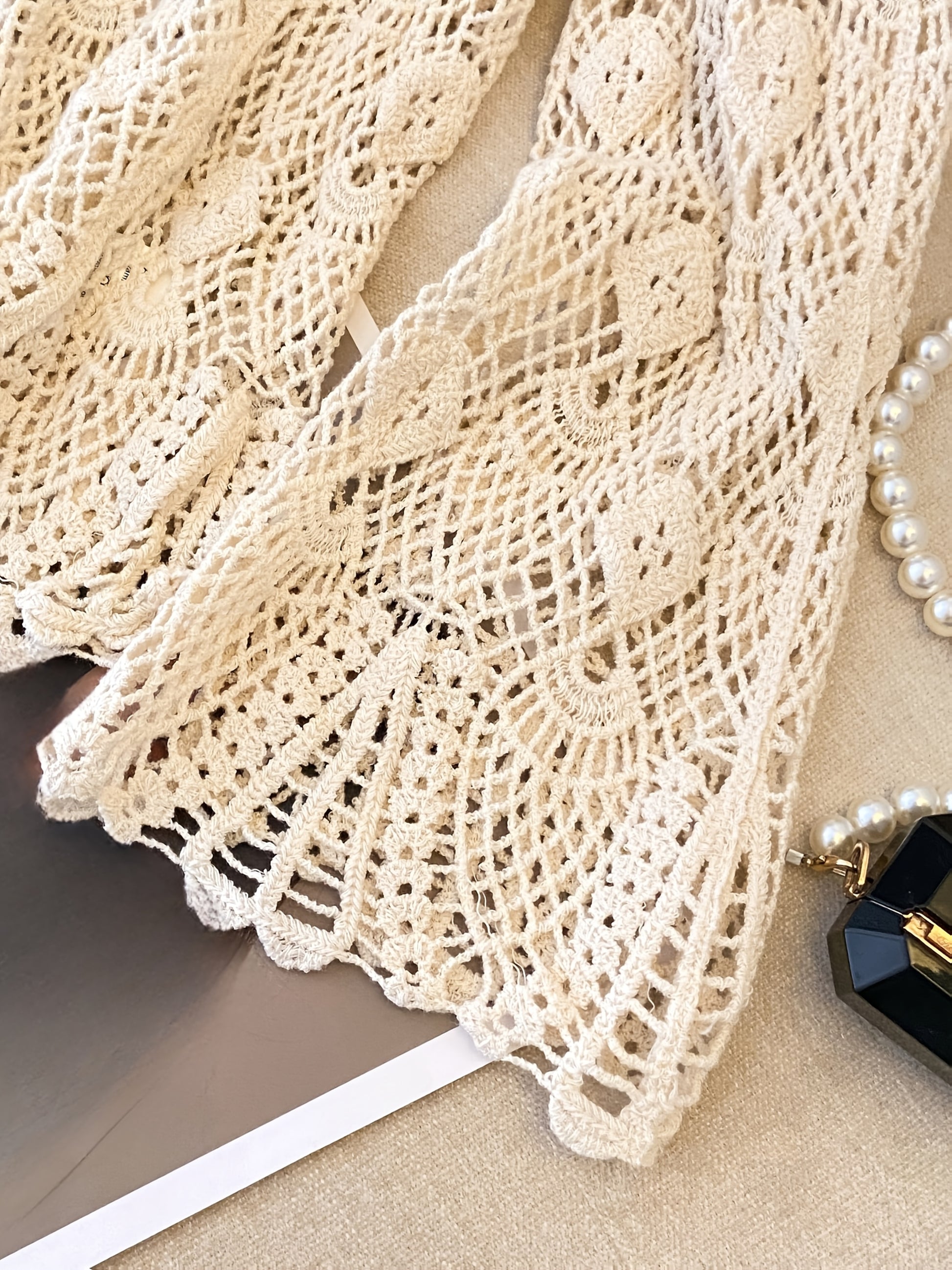 Blusa de encaje de crochet con cuello en V para mujer talla plus de manga larga primavera verano