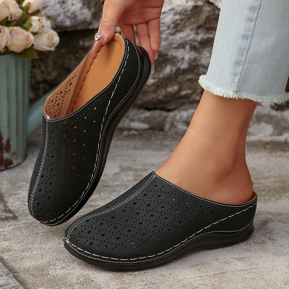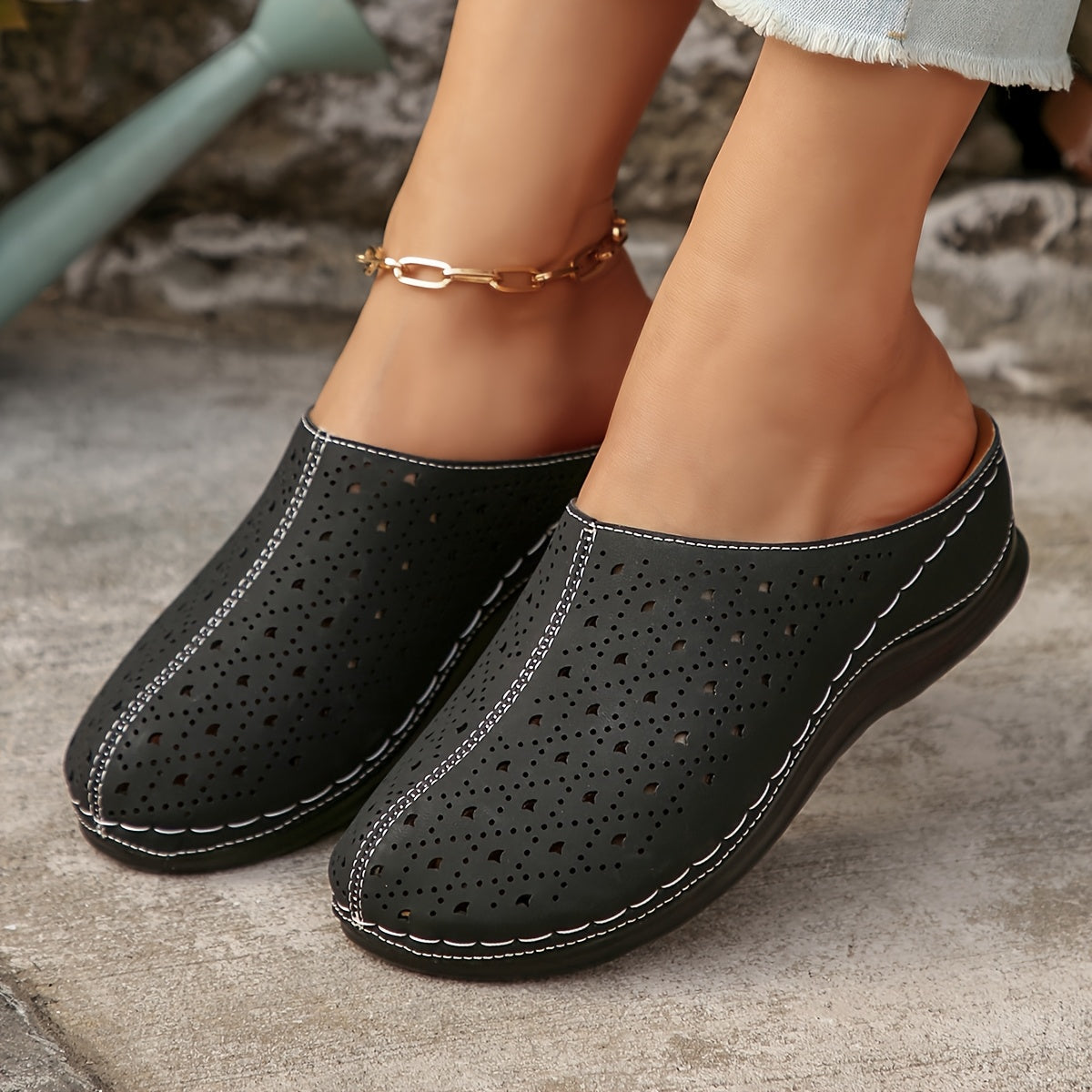 Women's Slip-On Platform Mules with Cut-Out Design Breathable PU Black White