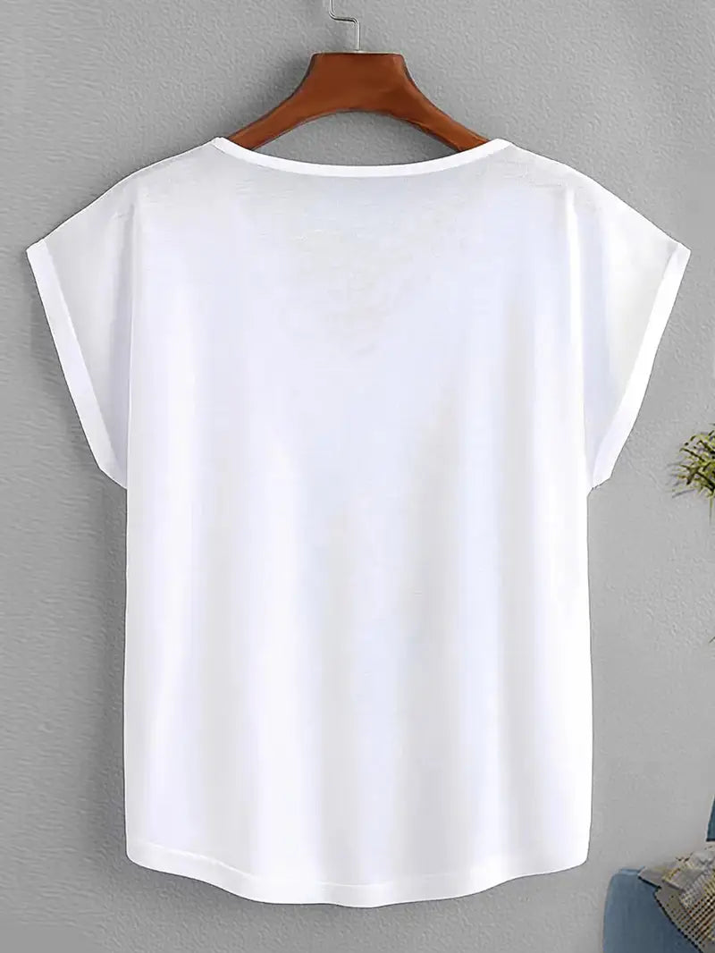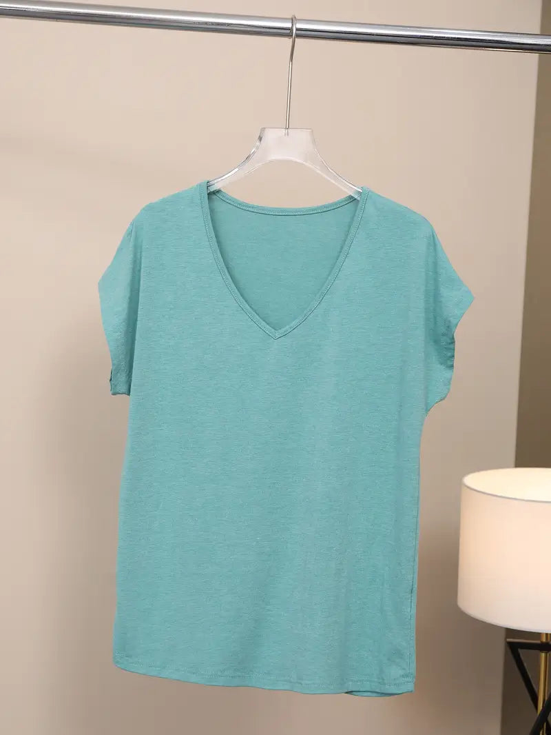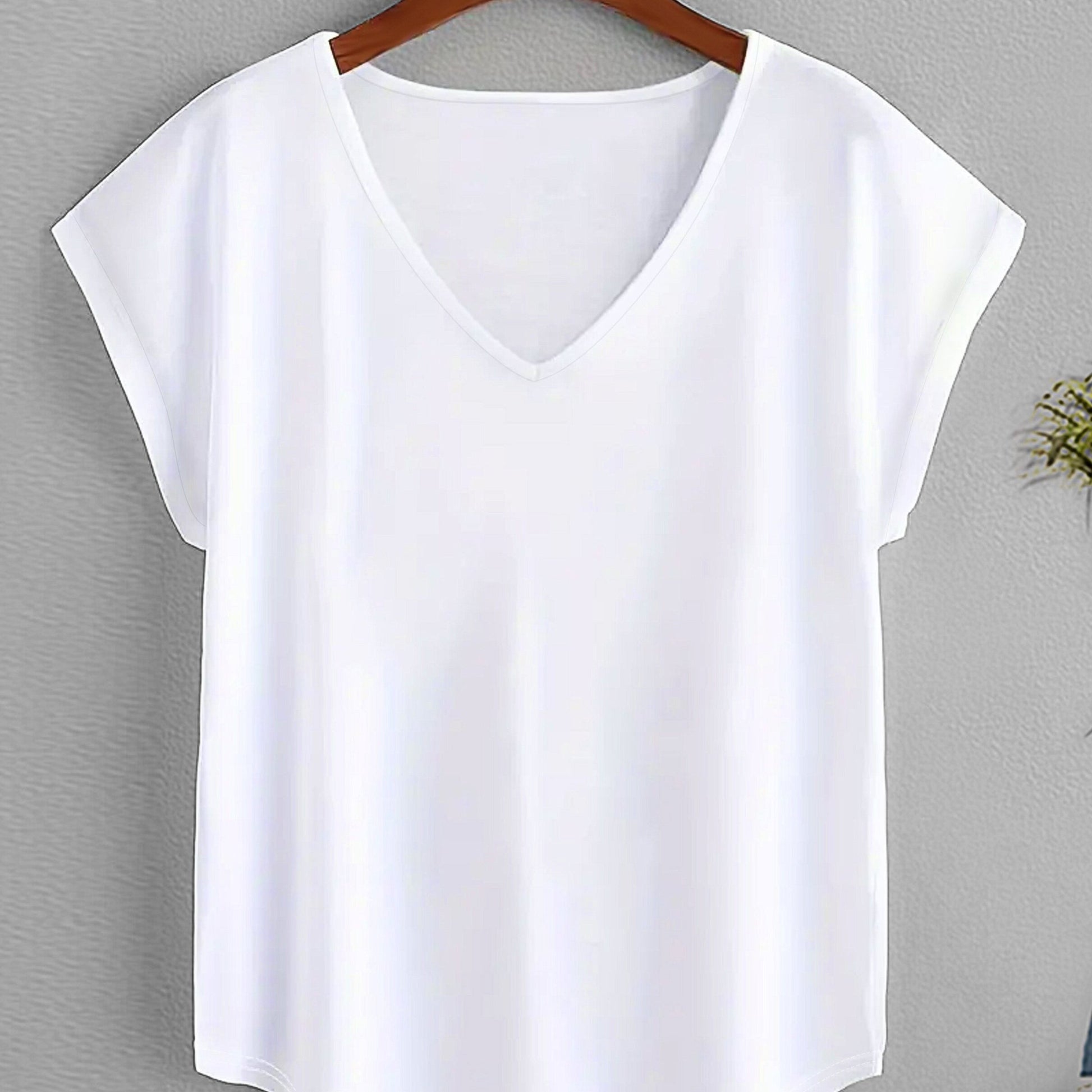 Camiseta de manga corta de color sólido para mujer, cuello en V, para primavera y verano, casual