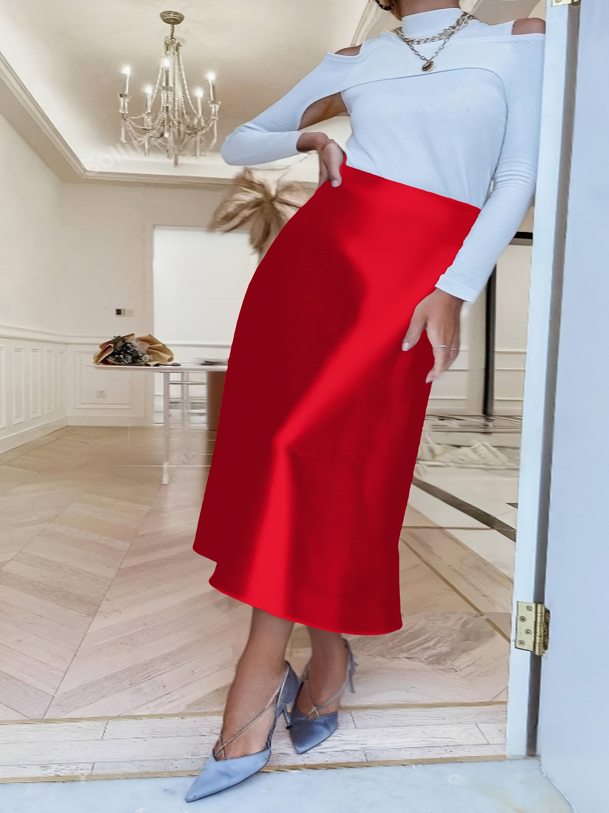 Falda larga de satén para mujer de cintura alta, negra, fluida, para todas las estaciones