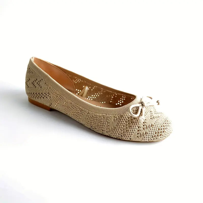 Zapatos de ballet slip-on para mujer, transpirable, de punto, con punta redonda, color negro y beige