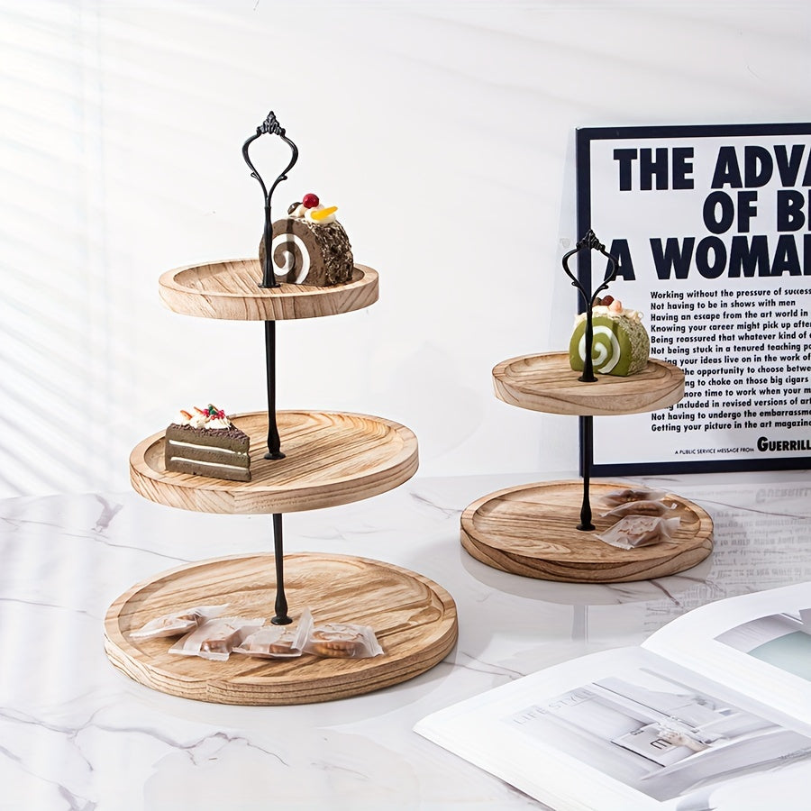 Soporte para pasteles de madera rústica con detalles de hierro para eventos y decoración