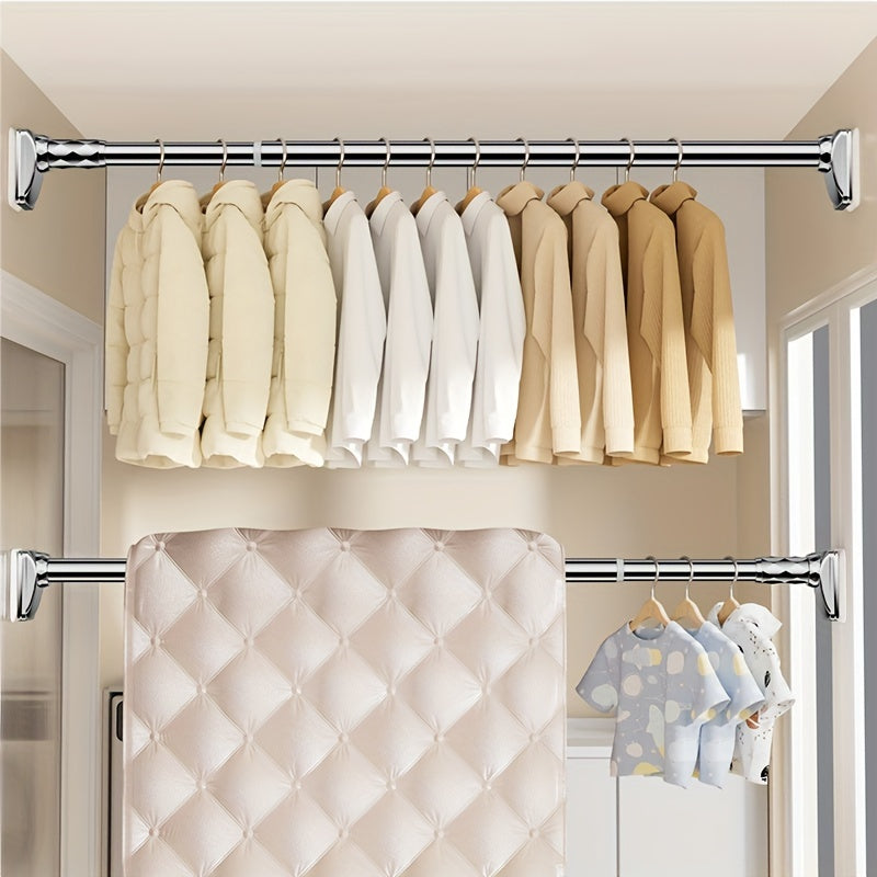 Contemporary Black Metal Spring Tension Rod for Windows, Closets, Bathrooms
