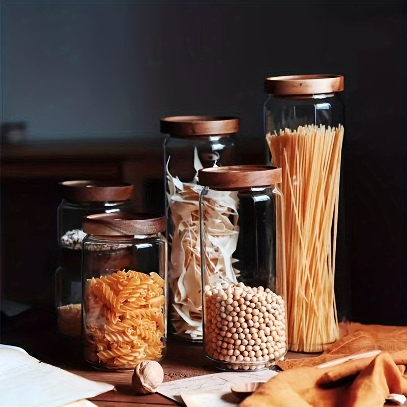 Glass Storage Jar with Bamboo Lid 1 Piece Kitchen Pantry Container for Snacks Spices