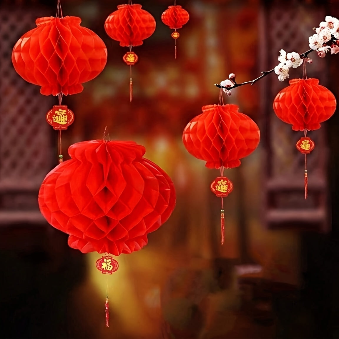 10 Red Honeycomb Paper Lanterns for Festive Home and Garden Decor