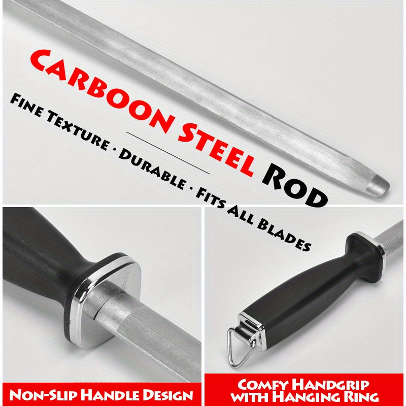 10-Inch Diamond Honing Steel Knife Sharpening Rod with Black Handle for Kitchen and Chef Knives