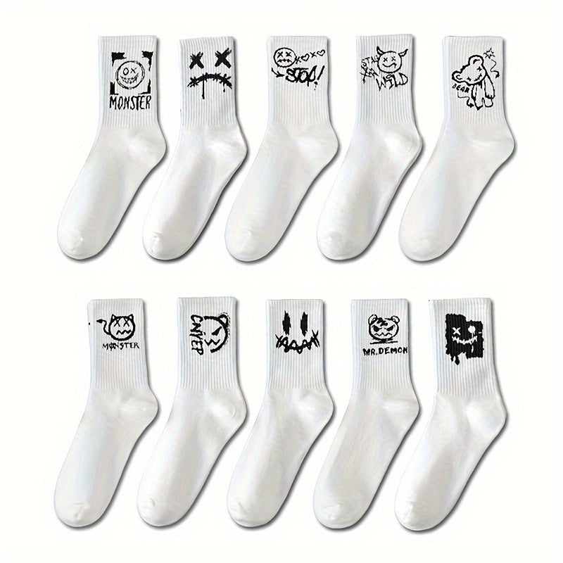 Unisex Skateboard Socks 10 Pairs Breathable Sweat-Absorbent Athletic Casual Outdoor