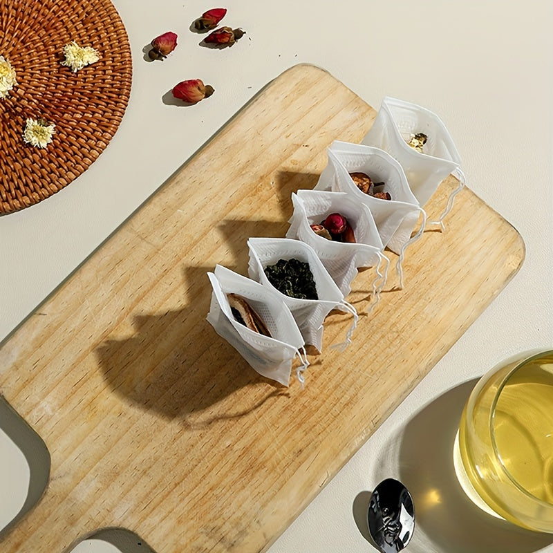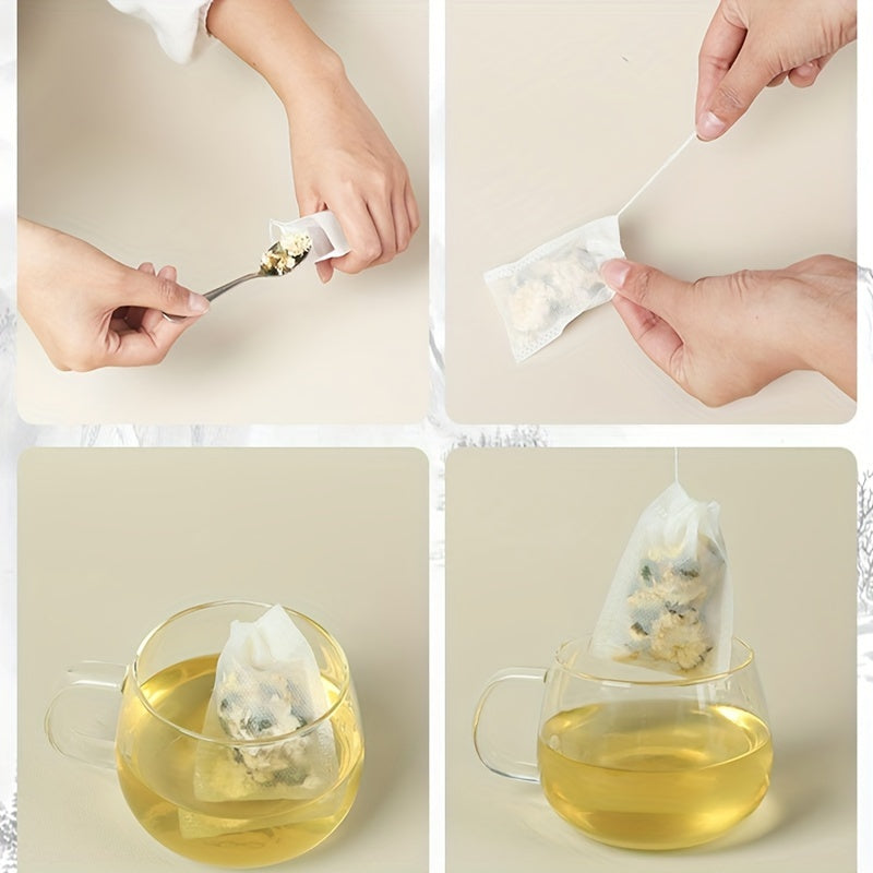 100 Disposable Drawstring Tea Bags for Loose Leaf Tea, Food Grade, Easy to Use