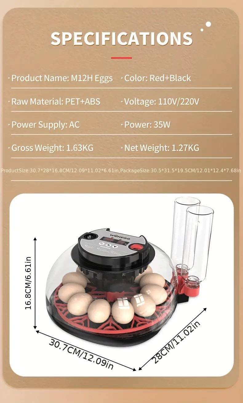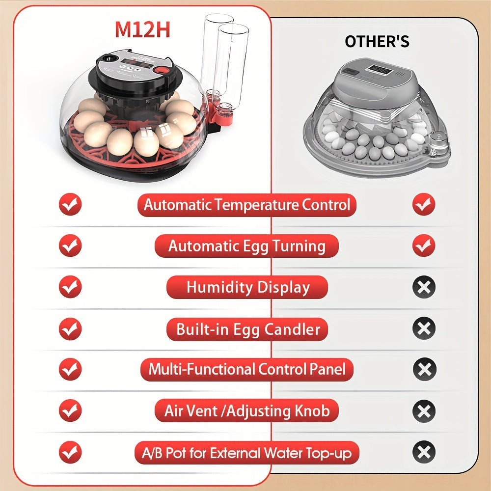 12-Egg Automatic Incubator with Egg Turning Humidity Control for Poultry Farming