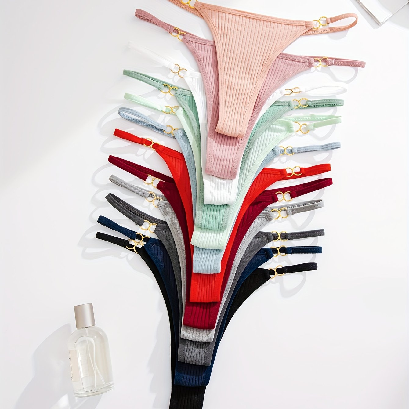 12 Pcs Women's Ribbed Low Waist Thongs with Ring-Linked V-Strings Sexy Lingerie