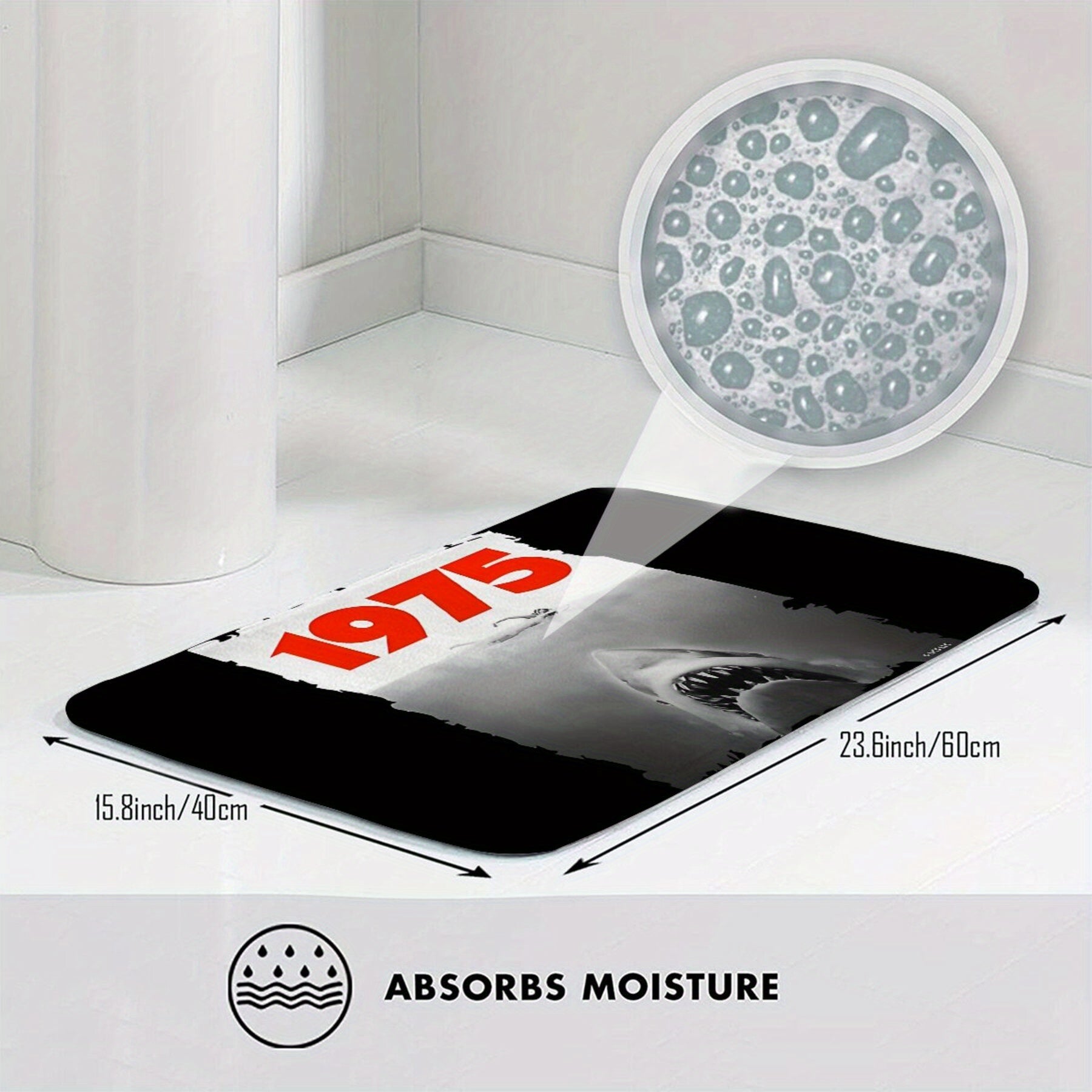 Jaws Fan-Inspired Bathroom Mat Lightweight Polyester Rug Machine Washable Rectangle Shape