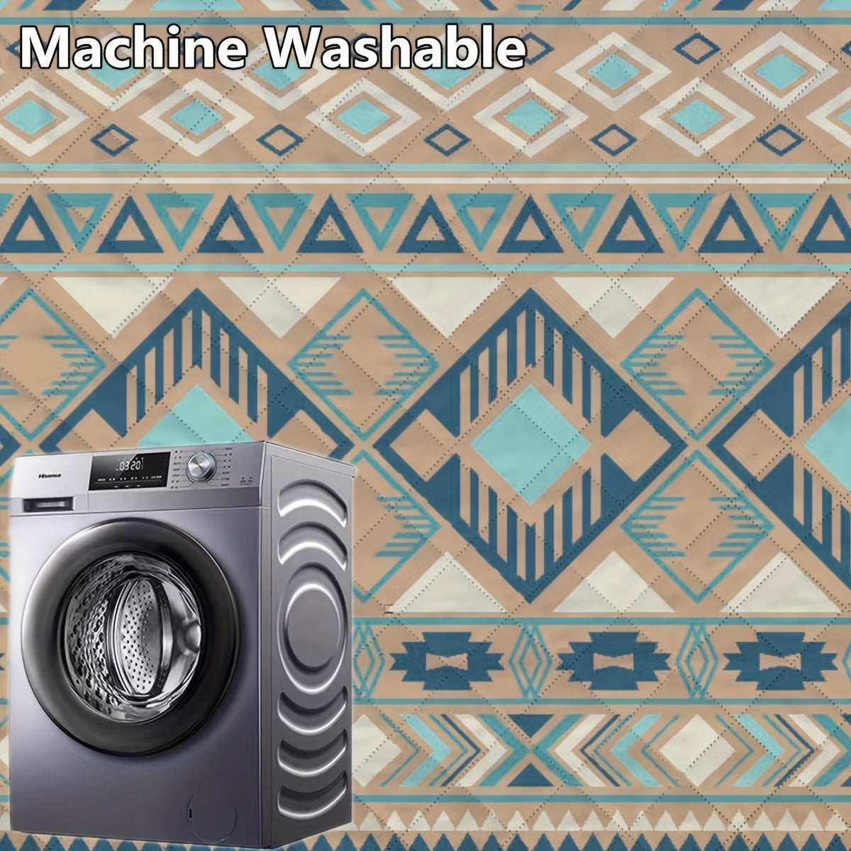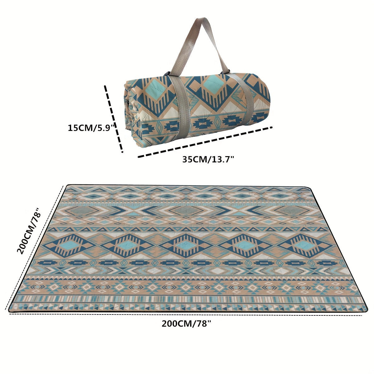 Waterproof Picnic Blanket 198cm Square Sand-Free Tear-Resistant Blue Geometric
