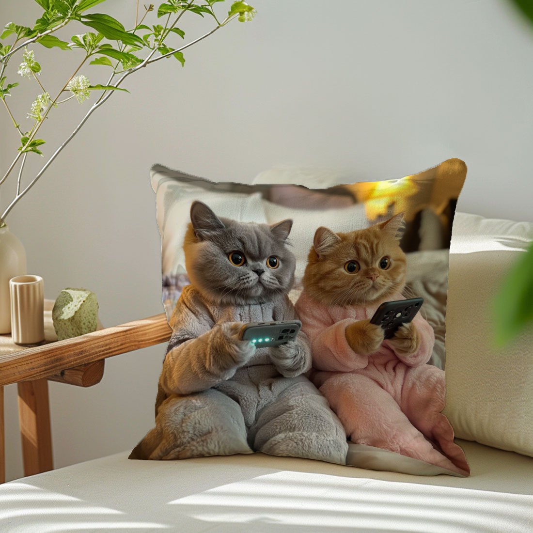 Cats Cushion Cover 45x45cm Peach Skin Velvet Single-Sided Print Sofa Pillow Case