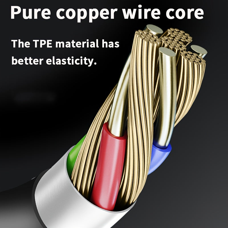 120W Fast Charging USB C to Type-C Cable Flat PVC Spring Retractable Data Transfer Compatible with Huawei Samsung Apple OPPO VIVO