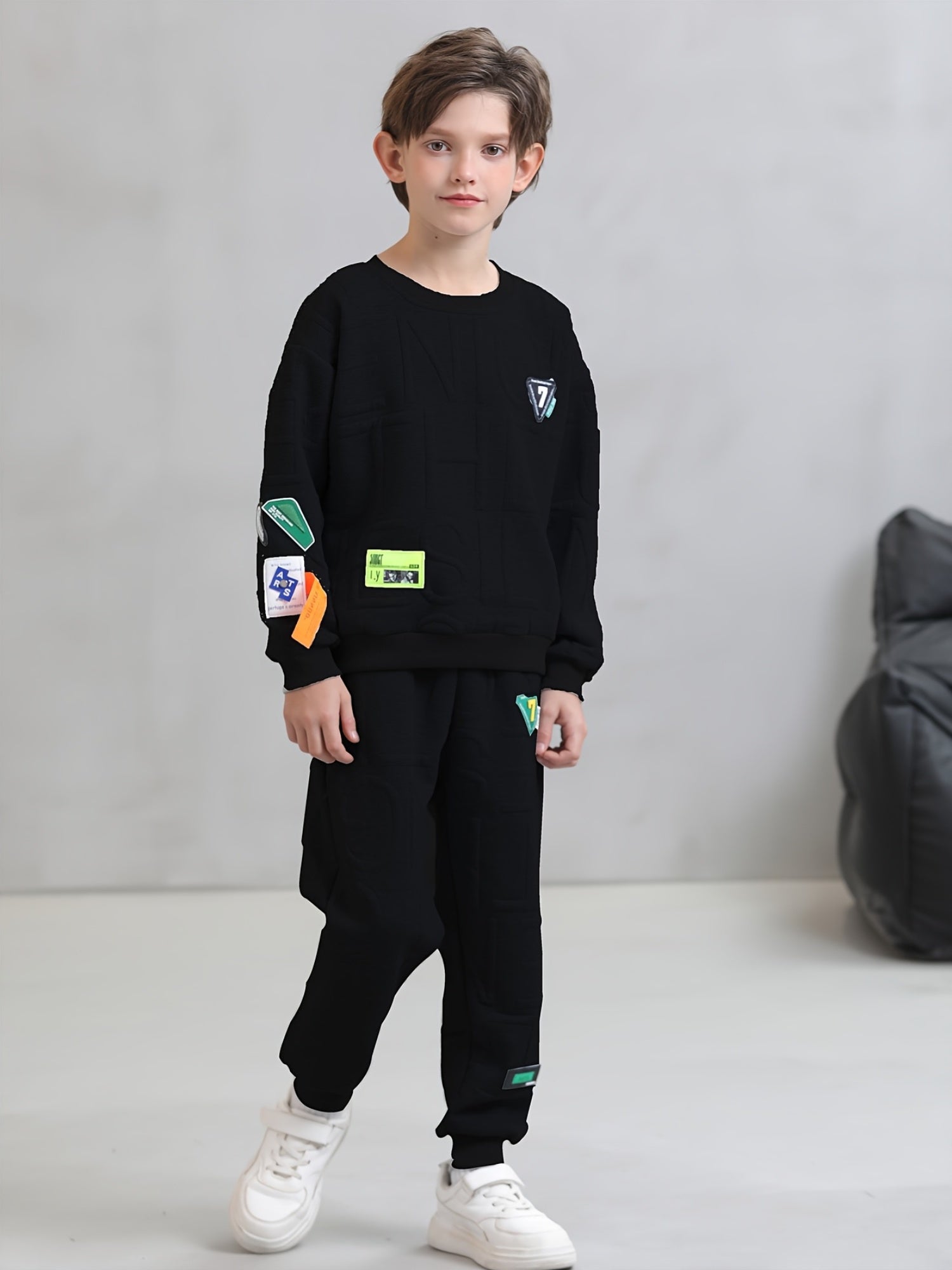 Boys' 2-Piece Viscose Knit Sweatshirt and Pants Set with Alphabet Pattern for Kids Under 12