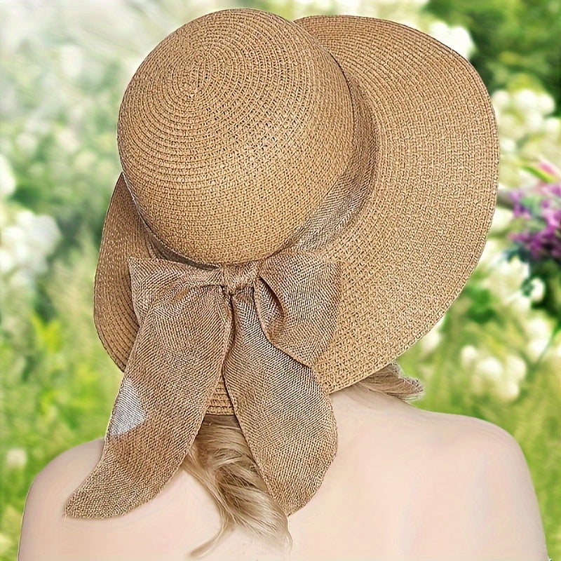 Women's Khaki Beach Sun Hat and Woven Shoulder Bag Set for Spring Summer Vacation