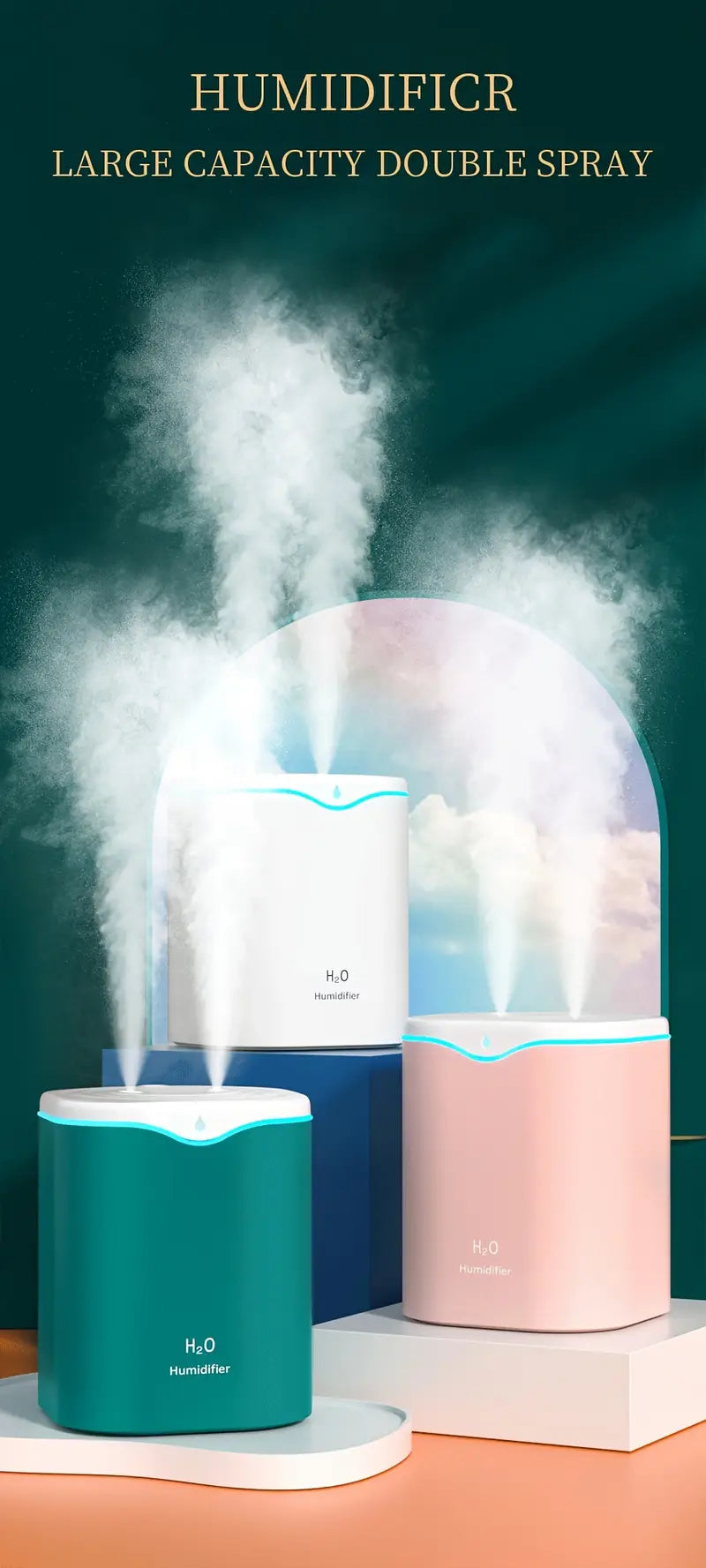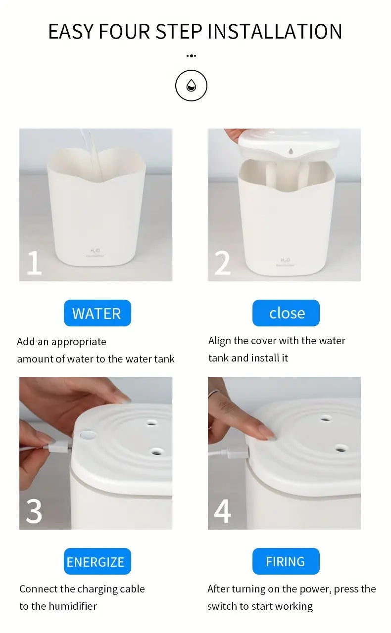 2000ml USB Humidifier with Dual Nozzles 2 Spray Modes for Bedroom Office Desk