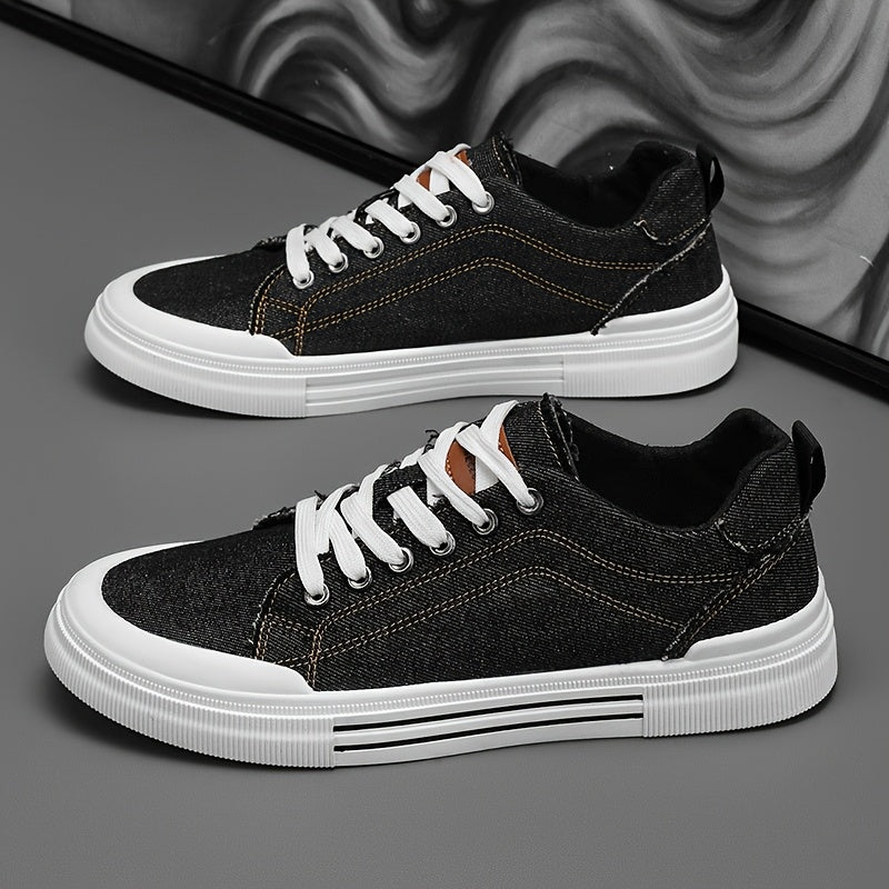 Men's Canvas Low-Top Sneakers Casual All-Season Lace-Up Solid Color