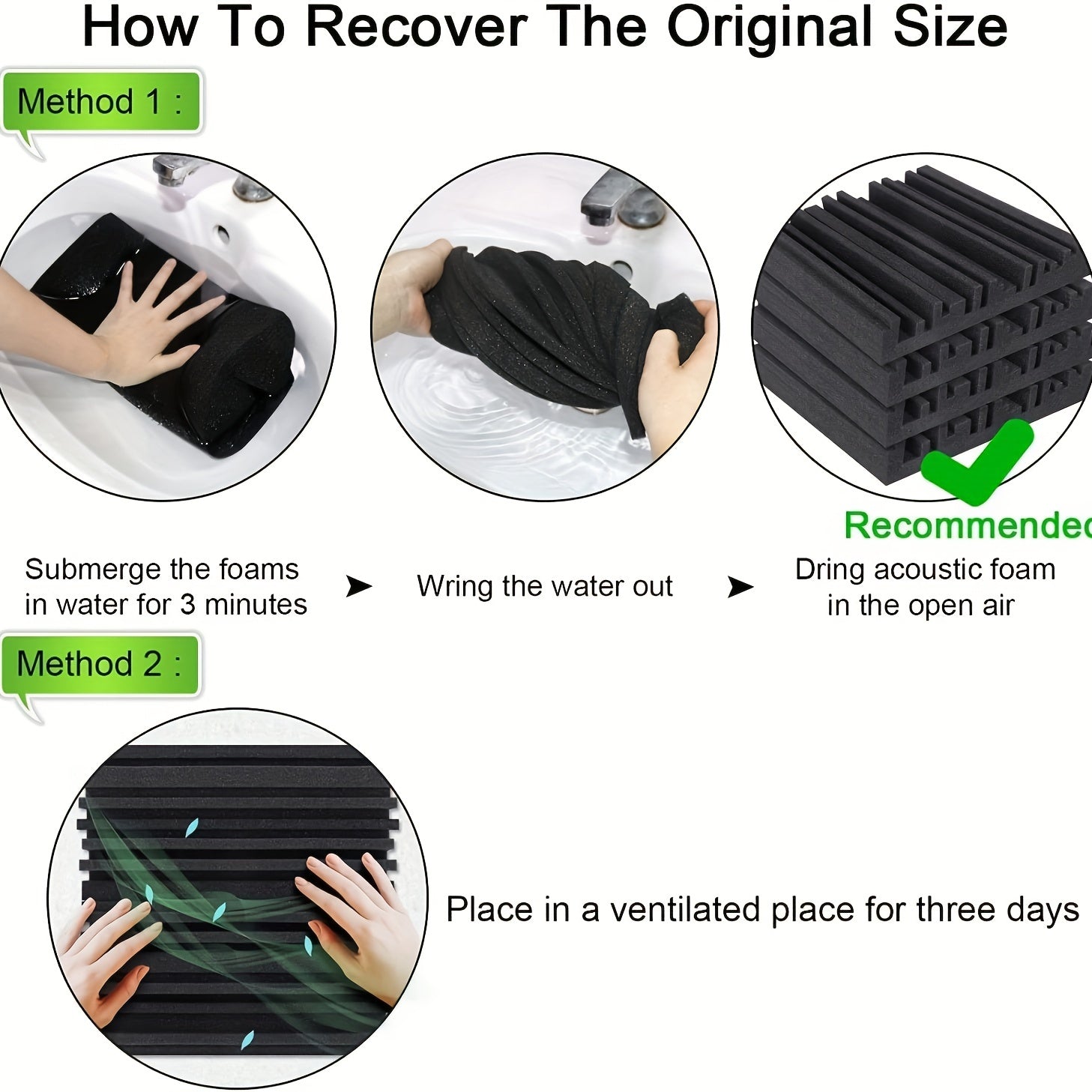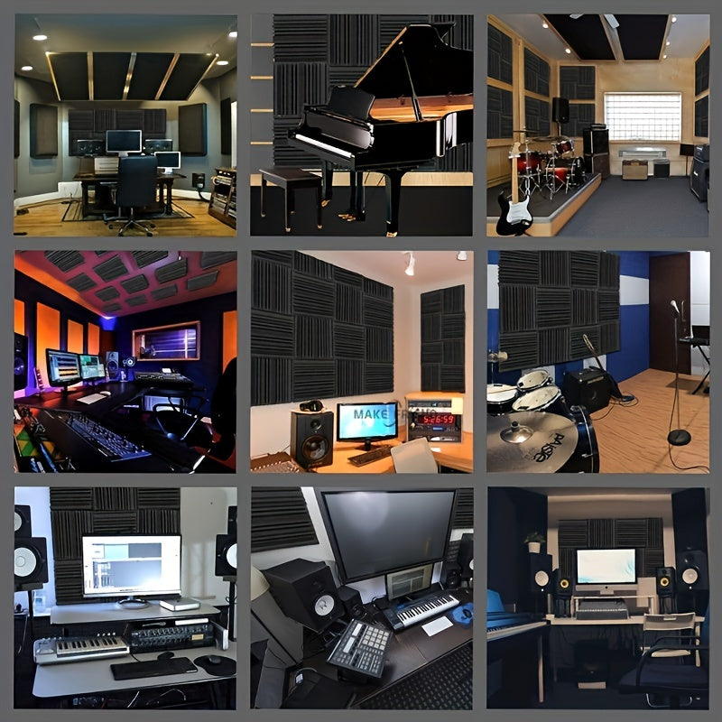 24 Pack Black Acoustic Foam Panels Soundproofing Studio Wall Insulation 2x10x10 Inches