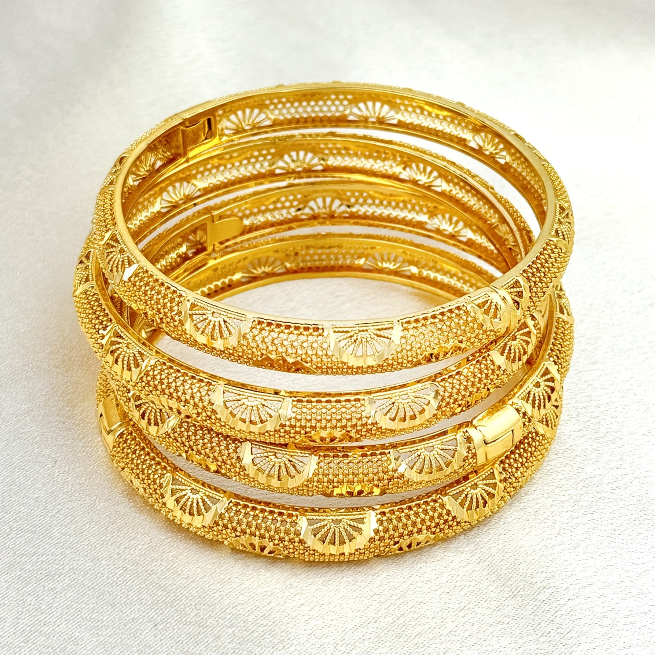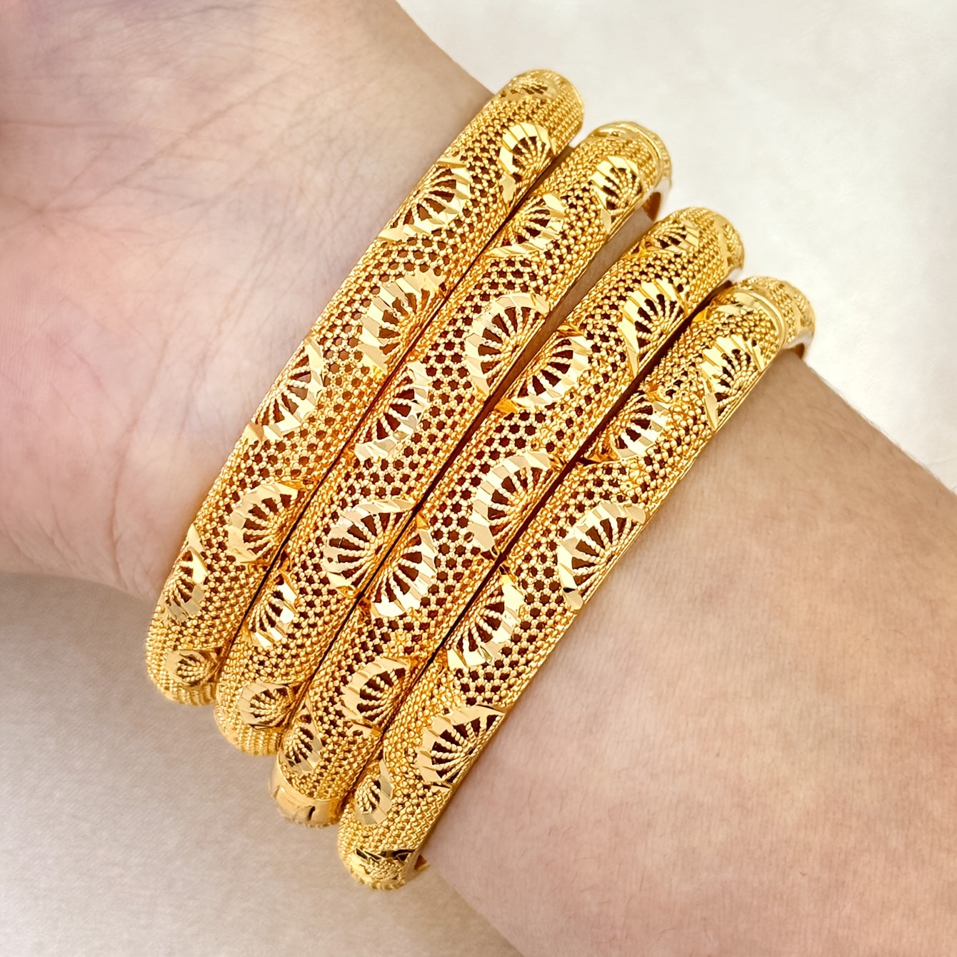 Golden Plated Copper Bangle Set for Women Hollow Circular Stylish Jewelry for Wedding and Daily Wear