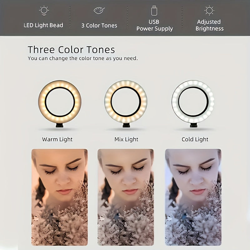 25.4cm USB LED Ring Light with Adjustable Color Temperature, 120 LEDs, Tripod and Phone Holder for Video Streaming and Photography