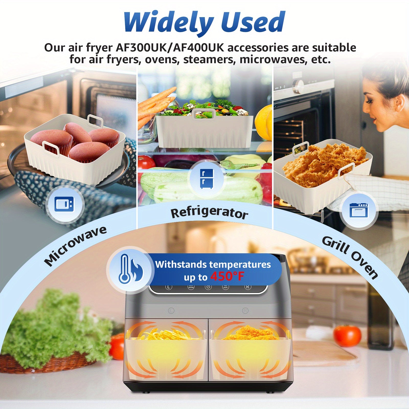 2pcs Silicone Air Fryer Liners with Handles Reusable Non-Stick Dishwasher Safe