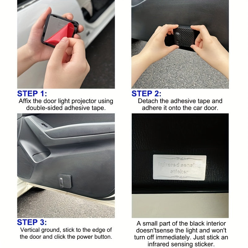 2pcs Wireless LED Car Door Projector Lights 3D Blue Fire Tiger Skull No-Drill Installation