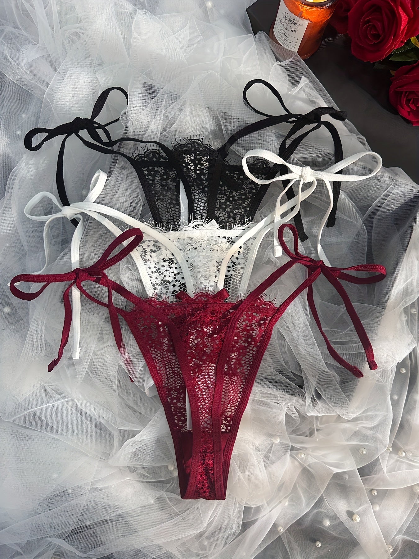 Women's Floral Lace Thongs with Side Ties Sexy Lingerie