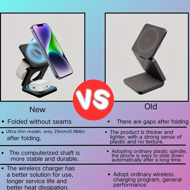 3-in-1 Wireless Charger Fast Charging Magnetic Phone Holder for iPhone, Headphones, Watches