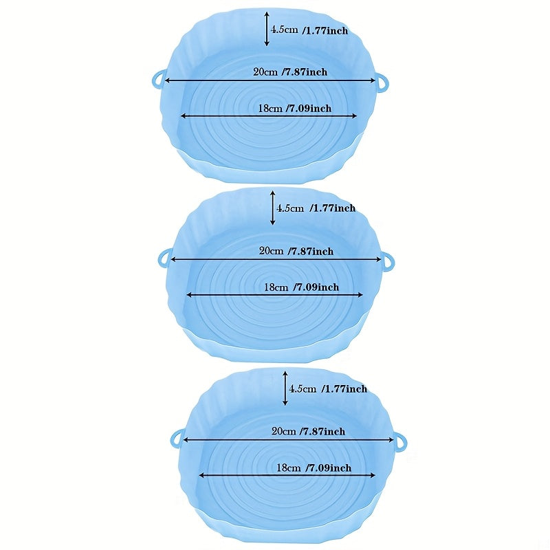 3-Pack Silicone Air Fryer Liners 7.09-Inch Non-Stick Reusable Oven Basket Bowls
