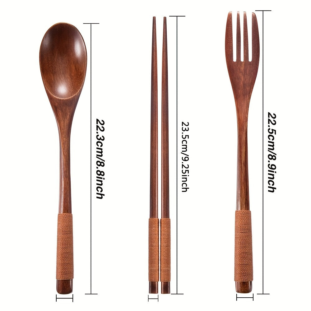 3-Piece Wooden Cutlery Set Spoon Fork Chopsticks Handcrafted Lightweight Durable Kitchen Utensils