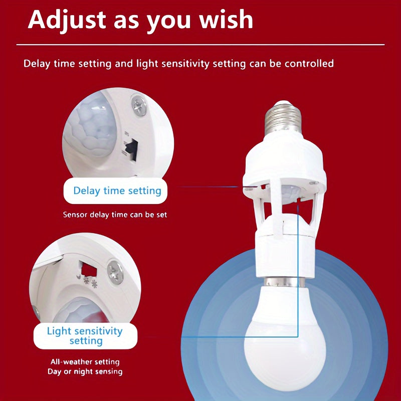 360° PIR Motion Sensor Light Socket E27 Base AC Hardwired 85-265V Adjustable Delay