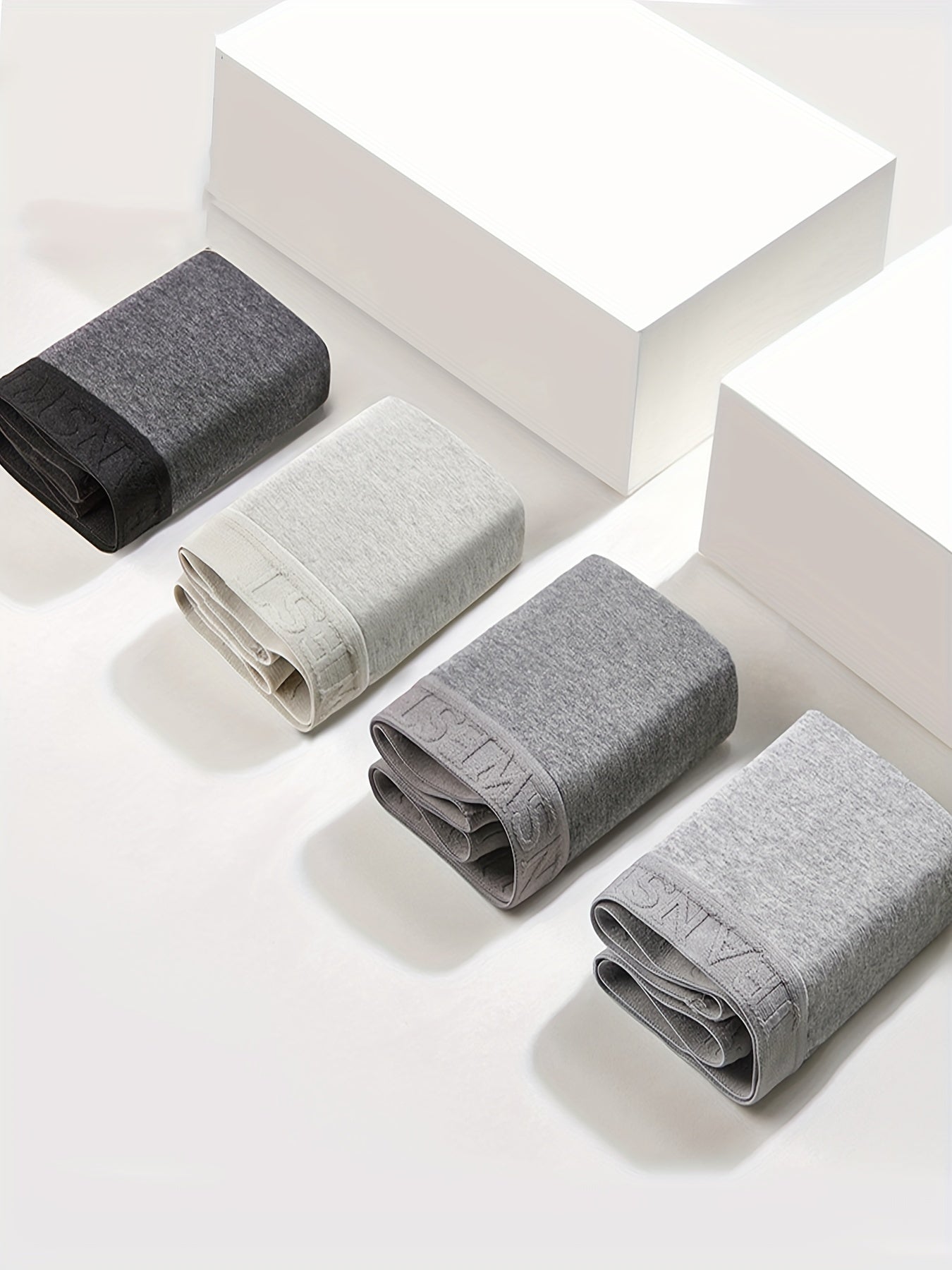 Set of 4 Men's Cotton Blend Boxer Briefs Breathable Elastic Waistband