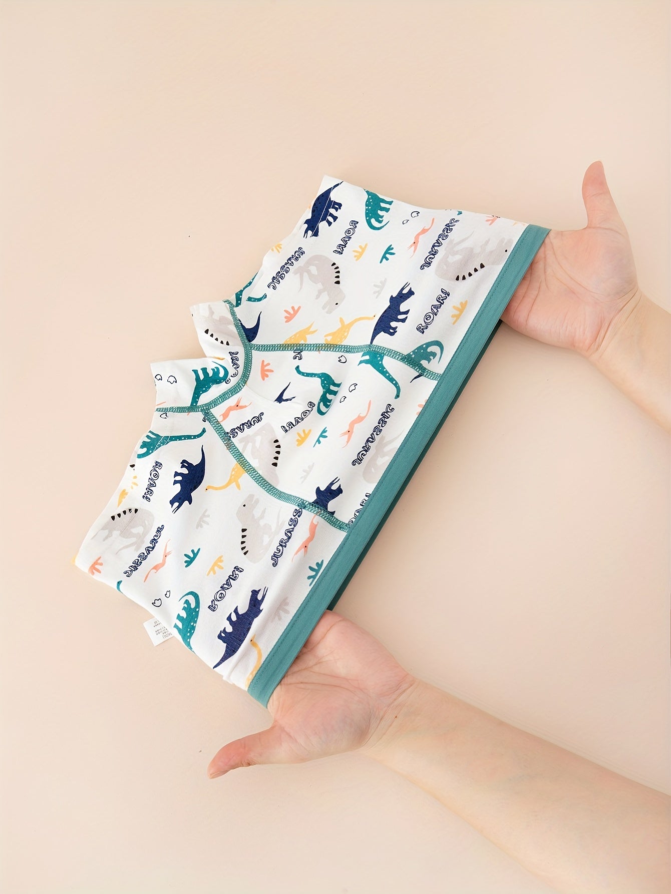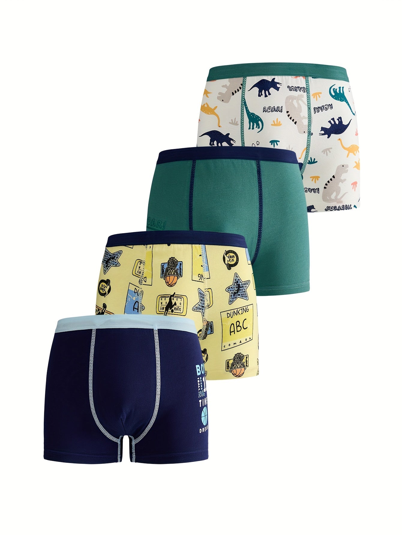 4-Pack Boys' Cotton Boxer Briefs with Cartoon Dinosaur and Basketball Prints All-Season Knit Fabric Regular Fit
