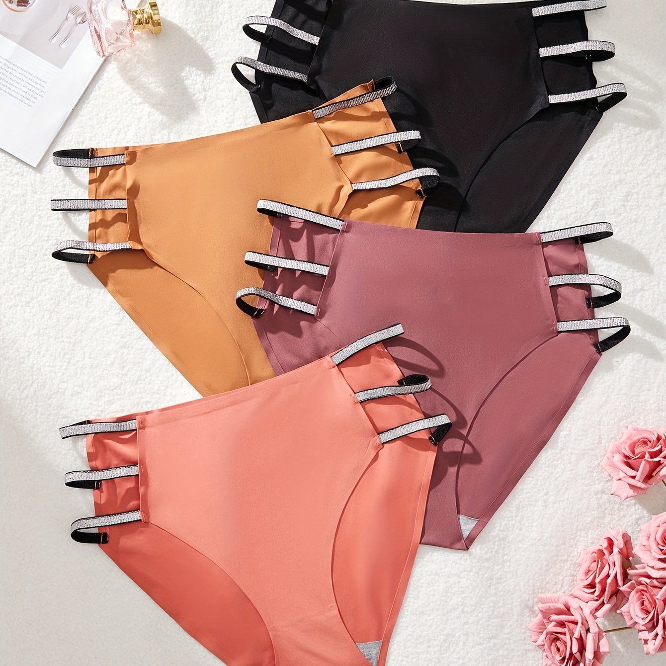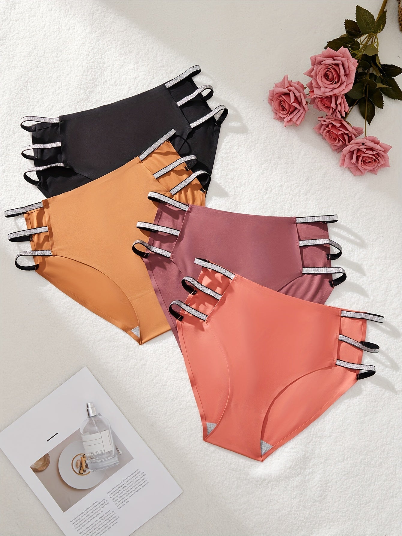 4-Pack Plus Size Women's Solid Color Knit Fabric Panties Medium Stretch Lash Sets