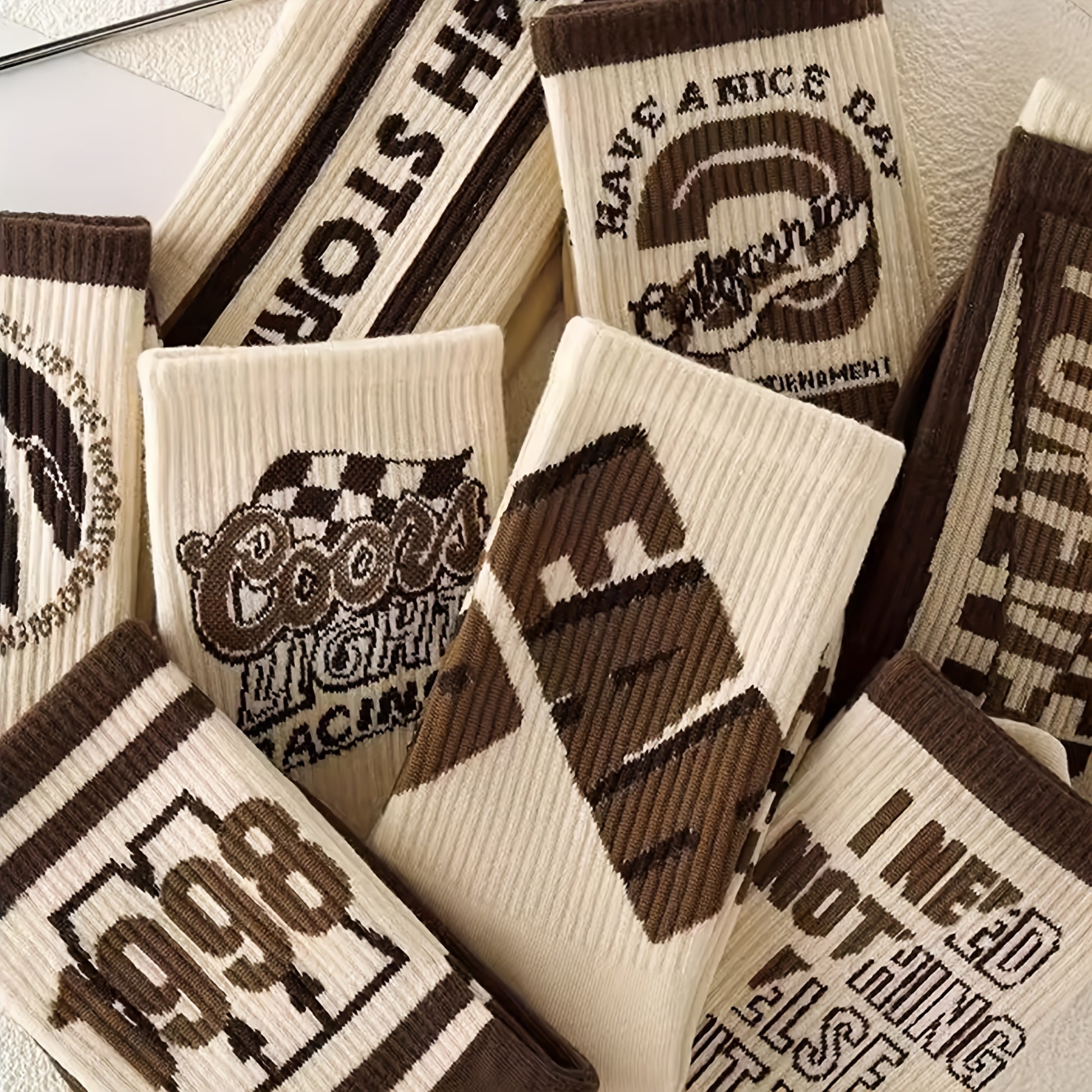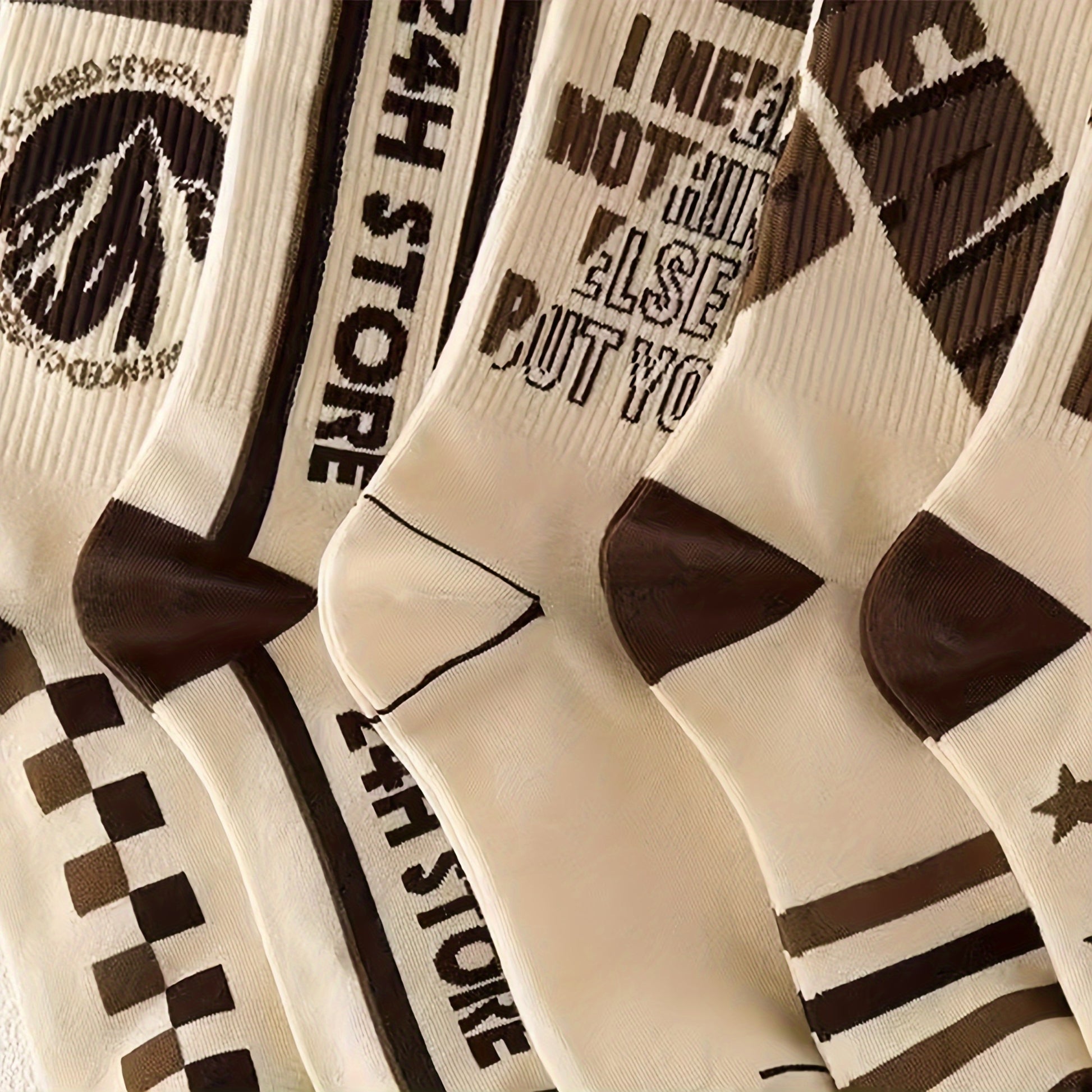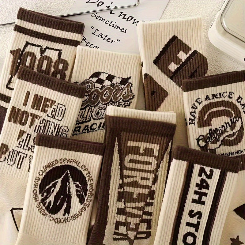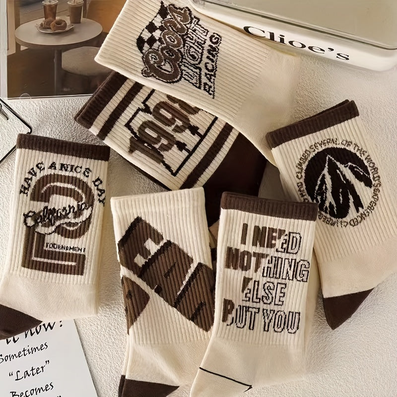 Men's Crew Socks 4 Pairs Retro Letter Pattern Breathable Knit Polyester Outdoor