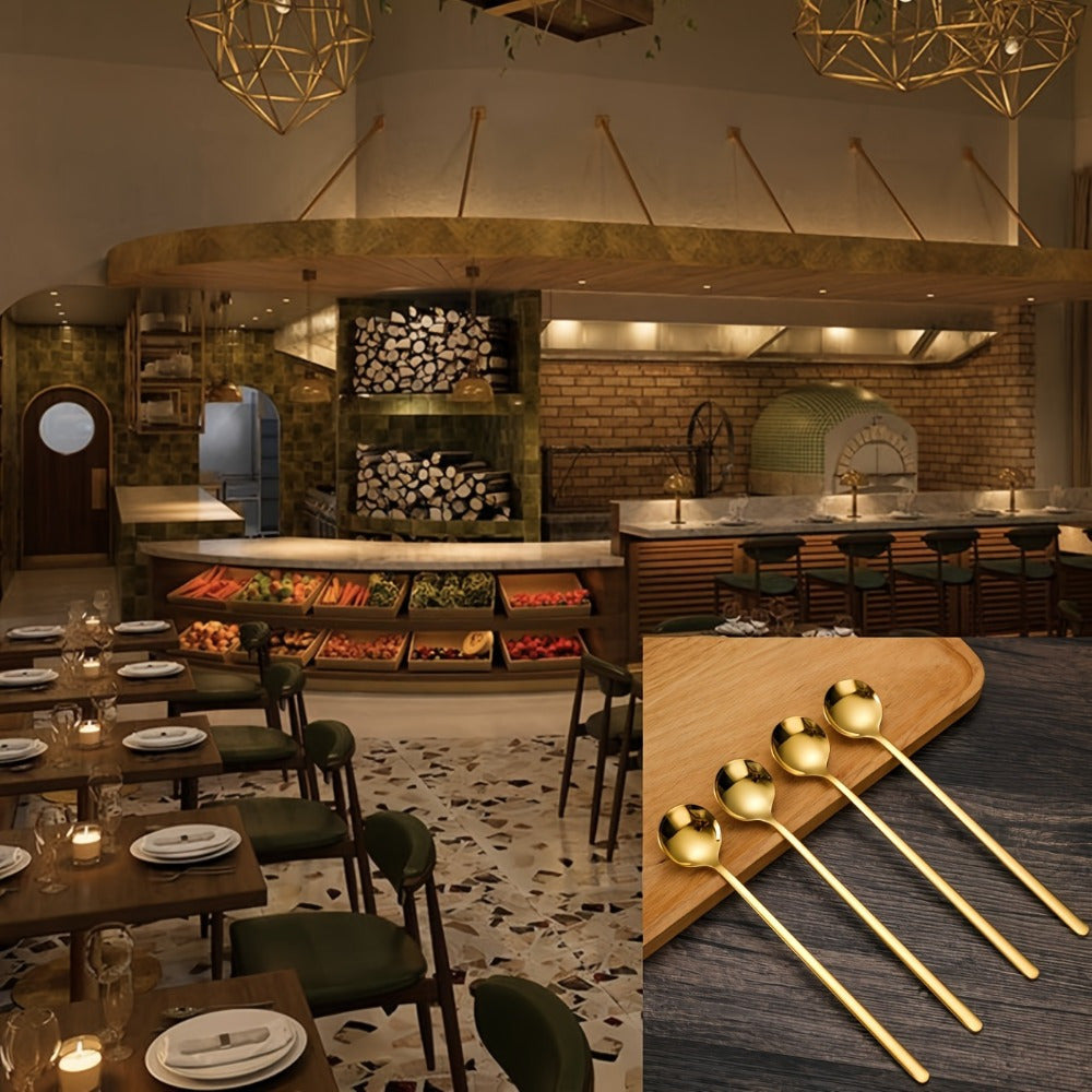 4-Piece Set of Gold-Tone Stainless Steel Serving Spoons for Coffee Tea Desserts
