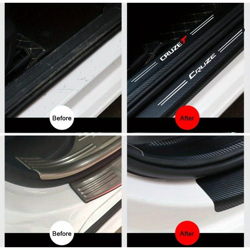 4pcs Car Door Sill Strips Faux Leather Decorative Pedal Covers