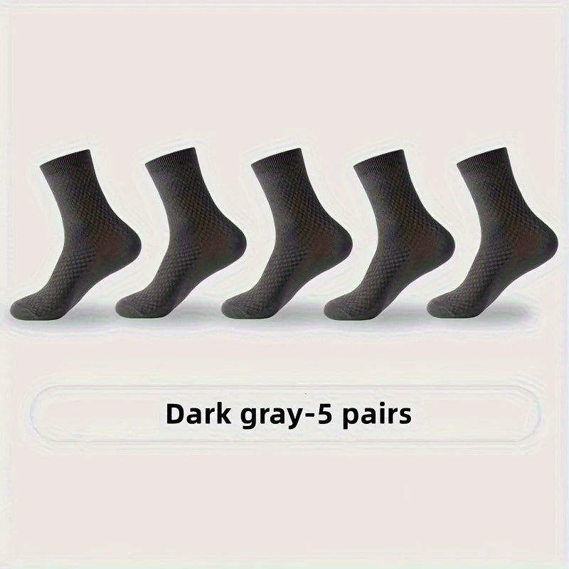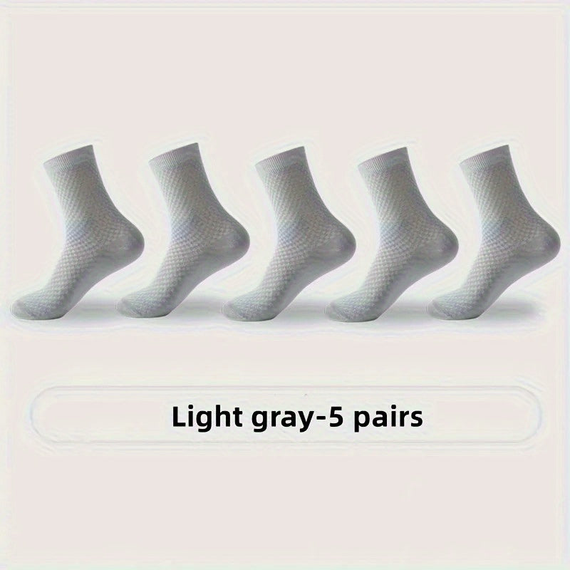 Men's Bamboo Fiber Mid Tube Socks 5 Pairs Casual Business Breathable
