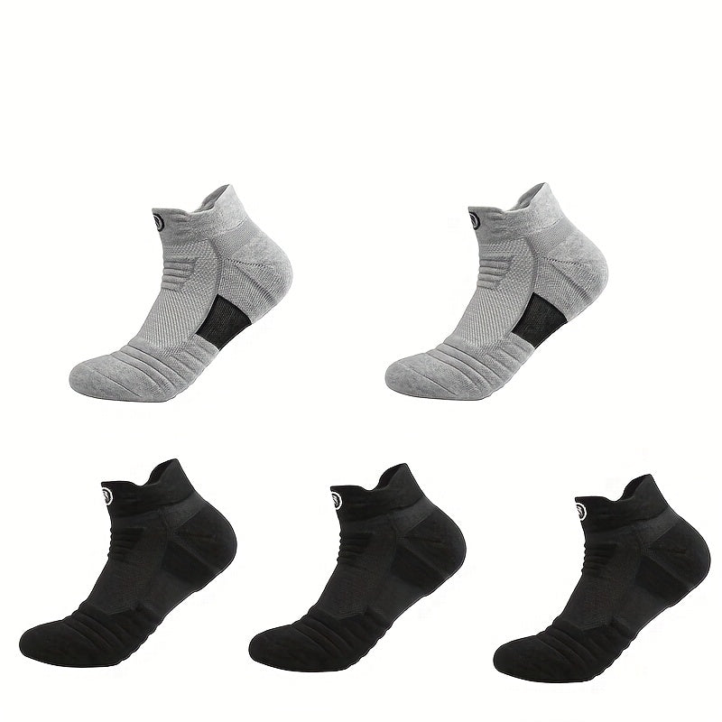 Men's Athletic Compression Socks 5 Pairs Breathable Sweat-Wicking Polyester Gray Black White