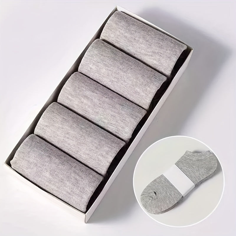 Men's Solid Ankle Socks 5 Pairs Breathable Sweat-Absorbent Outdoor Socks