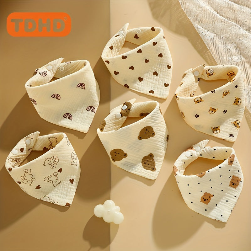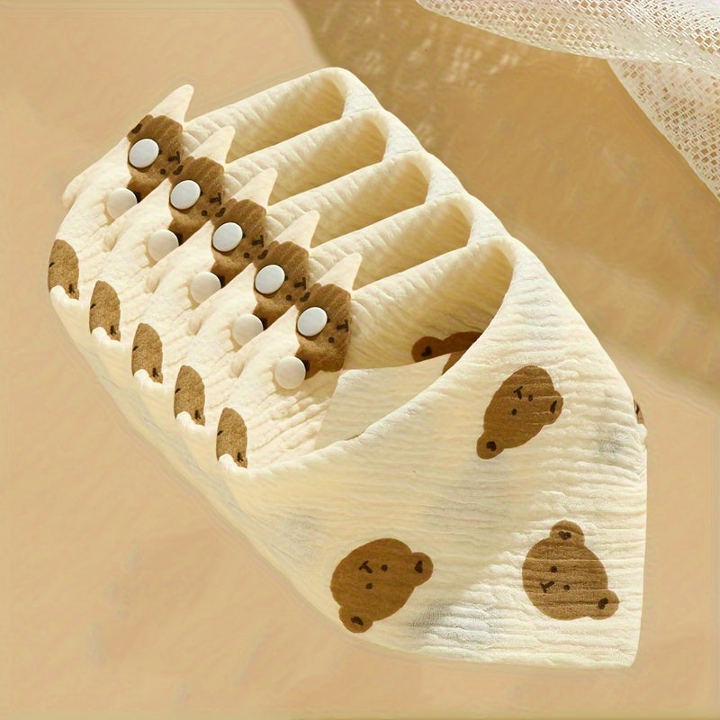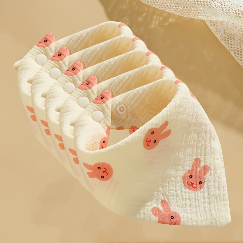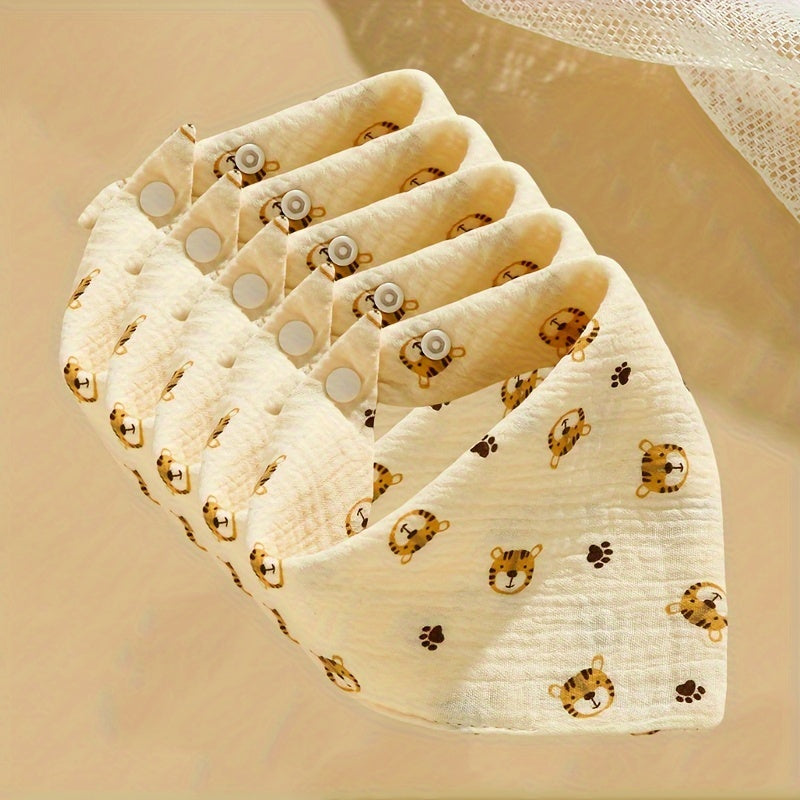 Set of 5 Baby Bibs for Kids Soft Cotton Cartoon Print with Snap Closure