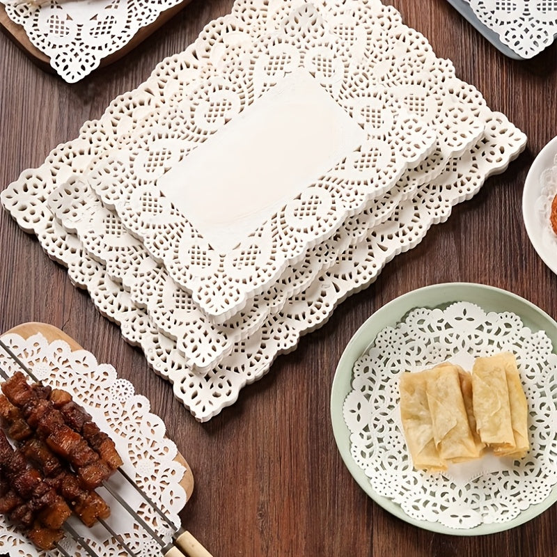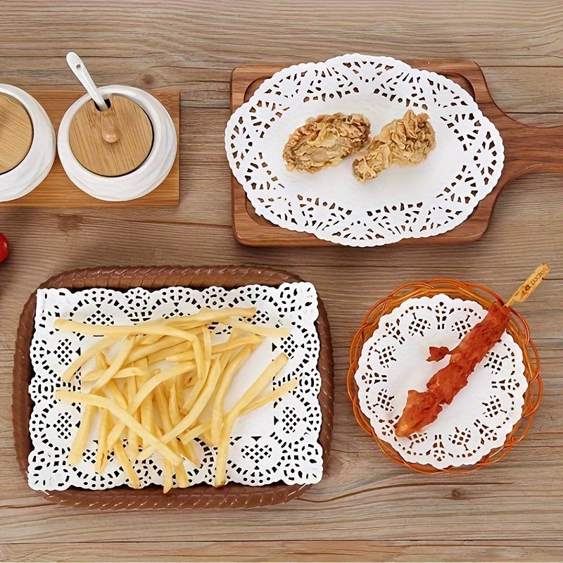 50 Pieces Lace Paper Oil Absorption Pads Cake Baking Pizza Food Pads in 3 Shapes